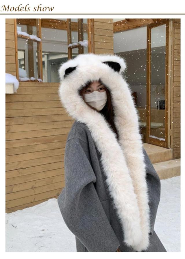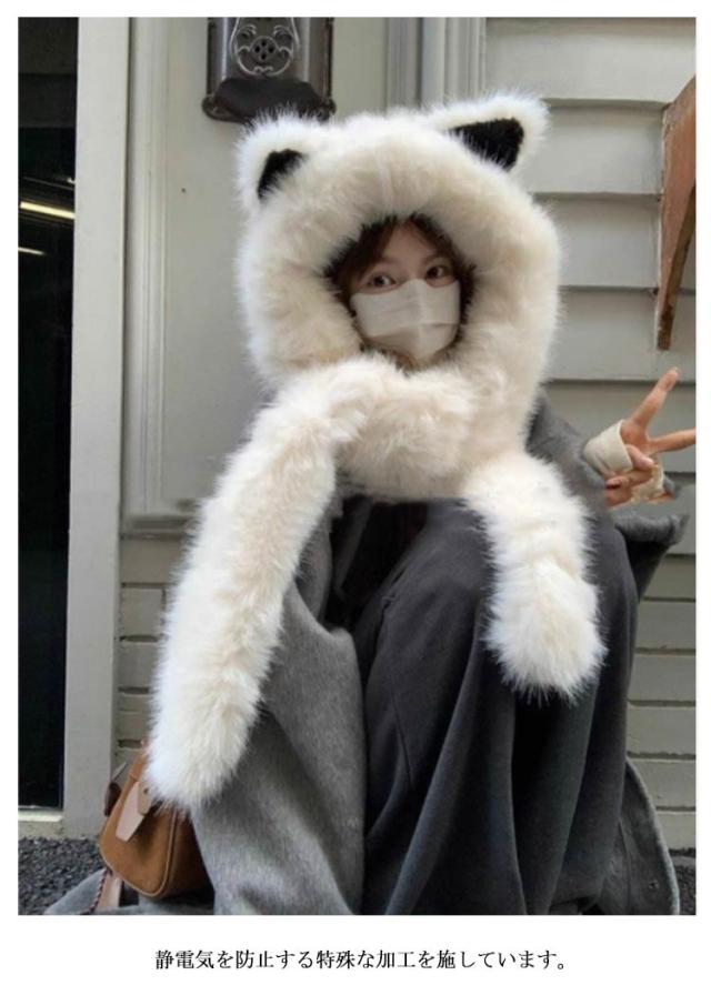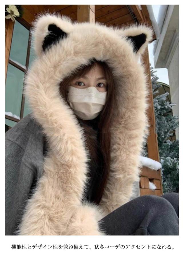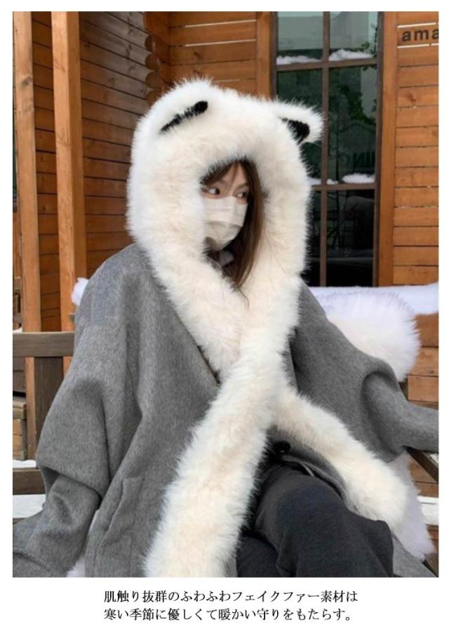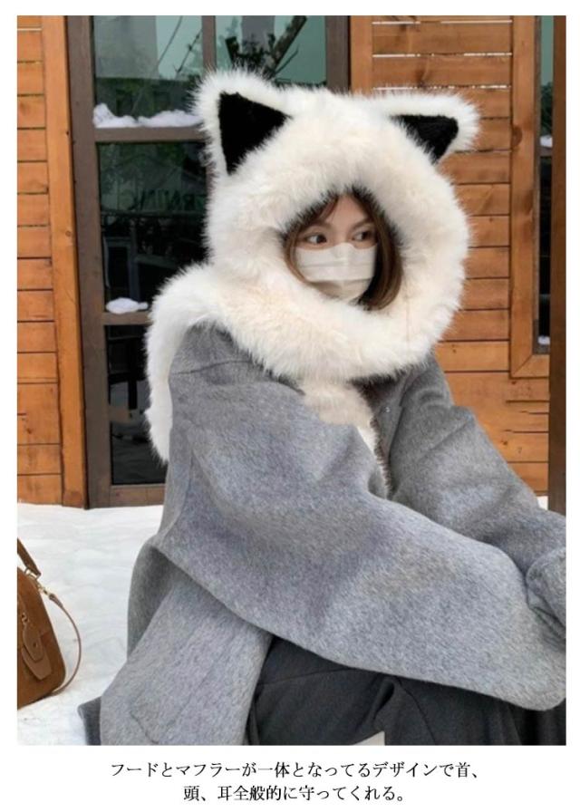 マフラー 帽子 冬 レディース フェイクファー ふわふわ フード付き ファー 一体化マフラー 耳付き フリース ネックウォーマー ストール 秋冬 防寒 防風 保温 ボア ふわふわ 可愛い もこもこ 無地 防寒対策 暖かい 軽い 静電気防止 送料無料