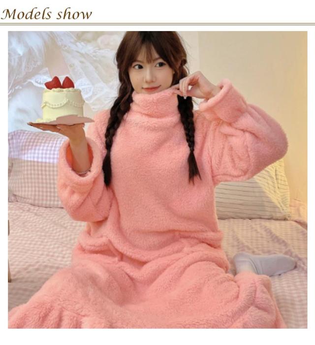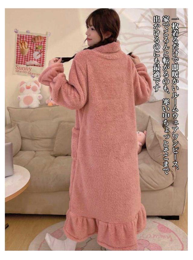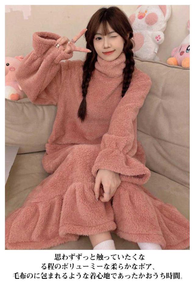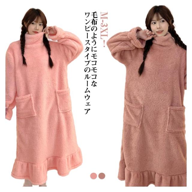 | M-3XL!毛布のようにモコモコなワンピースタイプのルームウェア 表裏全面やわらかな起毛素材で、ずっと触れていたくなる心地よさ♪ 首元までしっかり暖かいハイネック仕様。 暖かいボアフリース生地、保温性が高く、暖房を控えて過ごせるから省エネ。 思わずずっと触っていたくなる程のボリューミーな柔らかなボア、毛布のに包まれるような着心地であったかおうち時間。 一枚着るだけで即暖かいルームウェアワンピース、家でころんと転がるのも、寒い中ちょっとそこまで出かけるのにも最適です | |