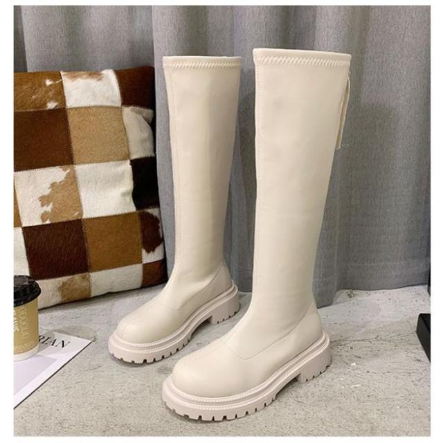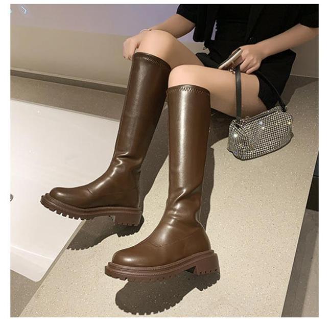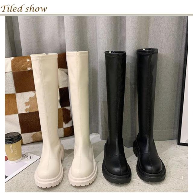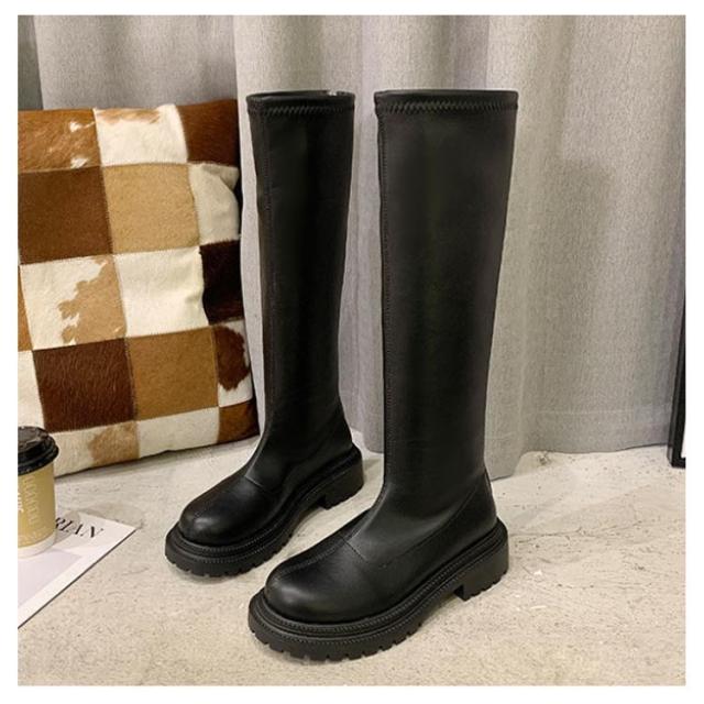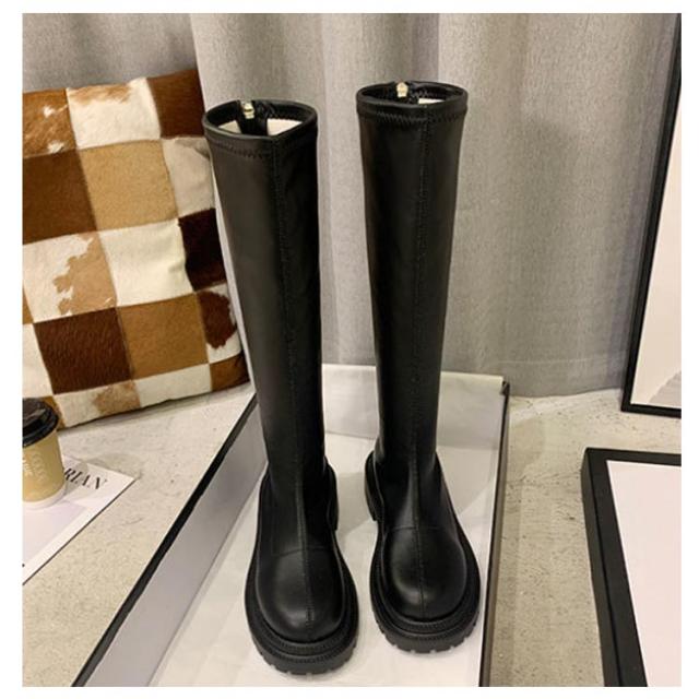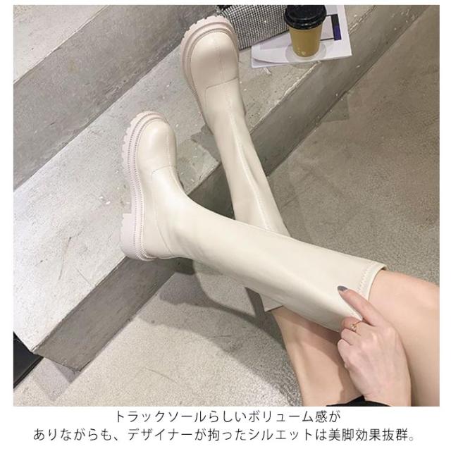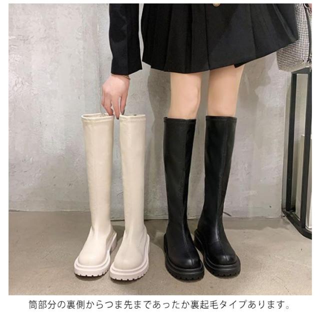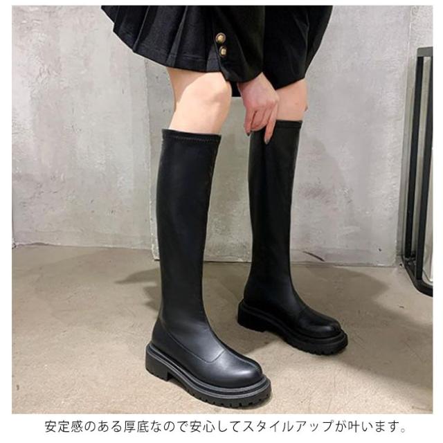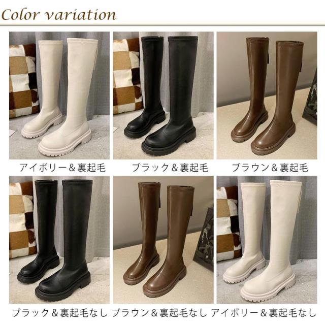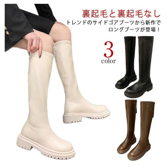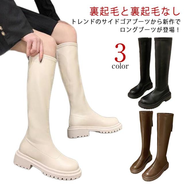 足長効果 裏起毛と裏起毛なし 効果 レディース 厚底 脚長 ロングブーツ ロングブーツ サイドゴアブーツ トラックソール 筒太め ブーツ 細見え インヒールあり ラウンドトゥ 春 秋 冬 あたっか 防水 撥水 pu 革ブーツ 防寒 保温