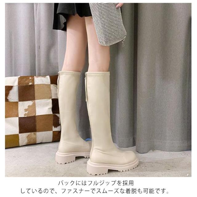 | トレンドのサイドゴアブーツから新作でロングブーツが登場!足が綺麗に見えるシルエットが魅力的です。裏起毛と裏起毛なし2タイプあり トラックソールらしいボリューム感がありながらも、デザイナーが拘ったシルエットは美脚効果抜群。 バックにはフルジップを採用しているので、ファスナーでスムーズな着脱も可能です。 筒部分の裏側からつま先まであったか裏起毛タイプあります。 安定感のある厚底なので安心してスタイルアップが叶います。 カジュアルすぎずキレイに履けるので幅広いスタイリングにマッチする万能型ブーツです。 | |