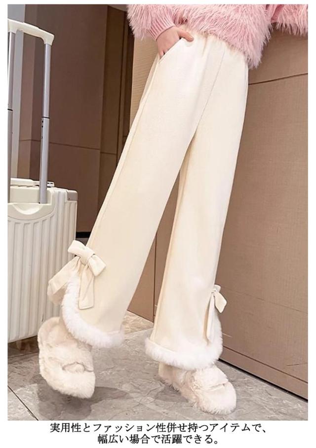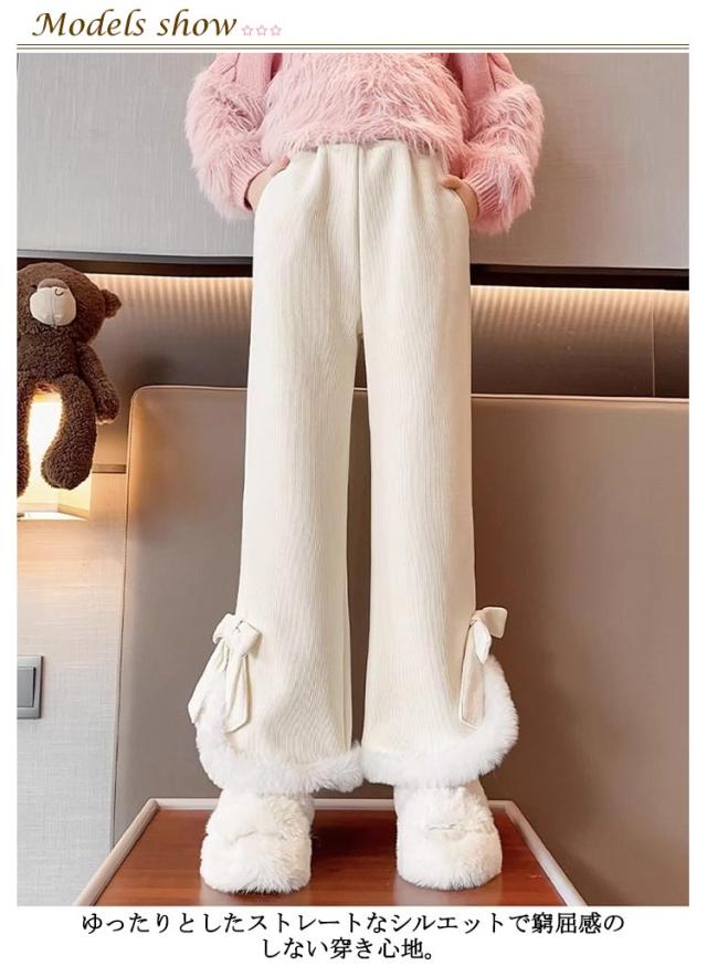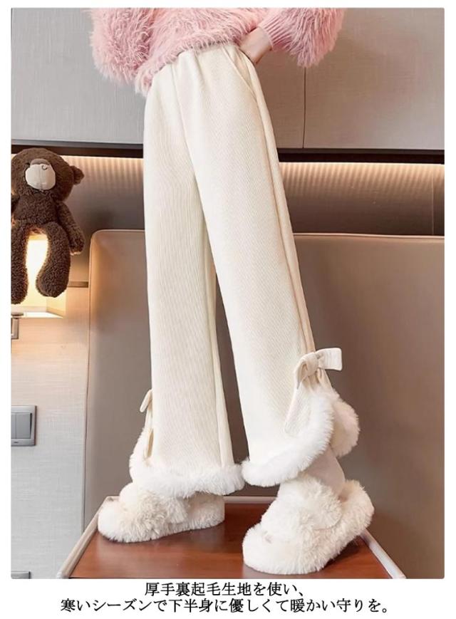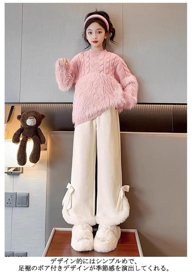 | 110cm 〜 170cm 女の子用の冬暖かいワイドパンツ ゆったりとしたストレートなシルエットで窮屈感のしない穿き心地 厚手裏起毛生地を使い、寒いシーズンで下半身に優しくて暖かい守りを デザイン的にはシンプルめで、足裾のボア付きデザインが季節感を演出してくれる 落ち着きのあるカラバリが用意され、トップスとのコーデも自由 実用性とファッション性併せ持つアイテムで、幅広い場合で活躍できる | |