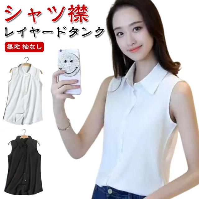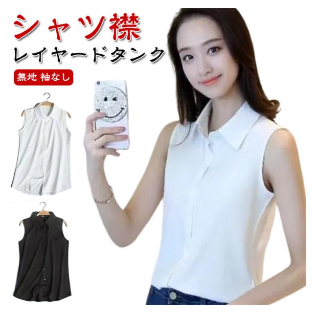 秋 ブラウス タンクトップ シャツブラウス インナーシャツ ブラウス ノースリーブ 黒 襟付き 大きいサイズ ワイシャツ 襟付き Yシャツ 重ね着 インナー スーツ 白 シフォンシャツ ブラック レイヤード シャツ 冬 春 夏 OL 通勤 襟付き 無地