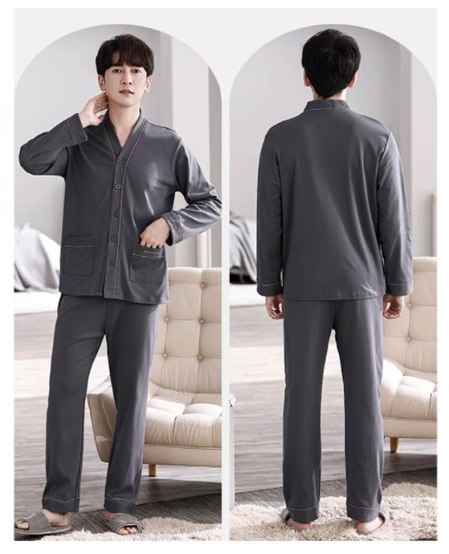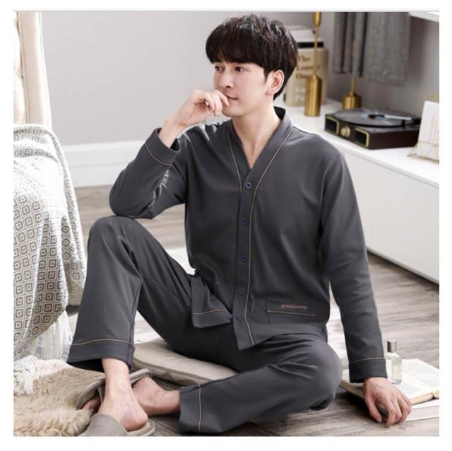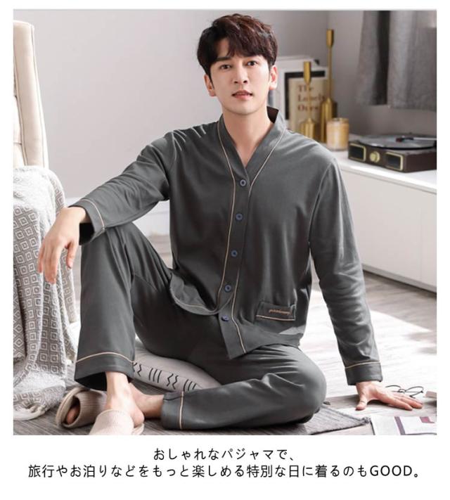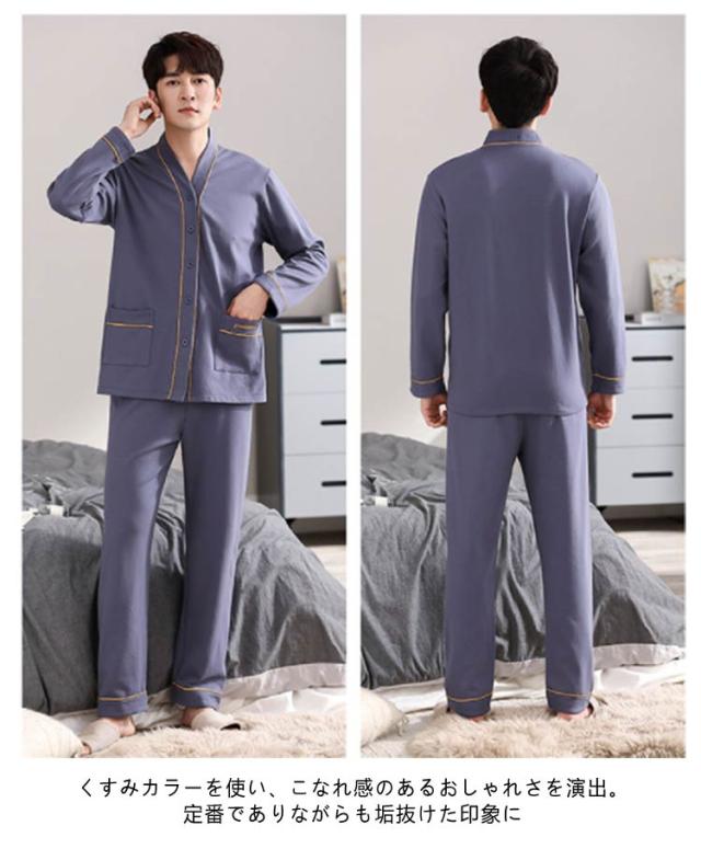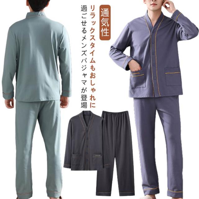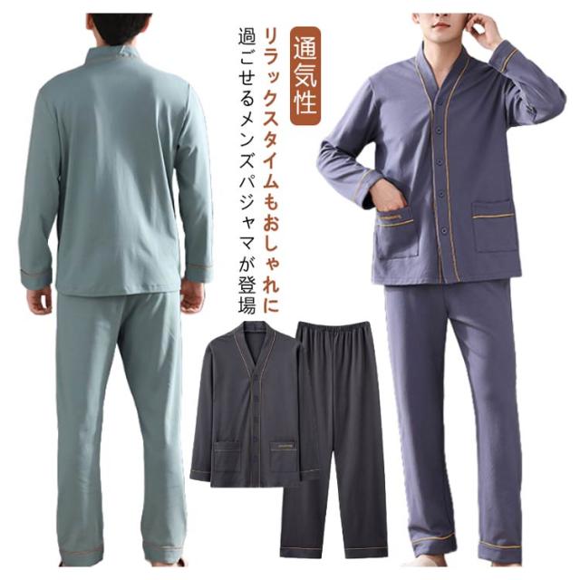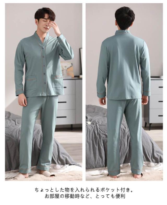 送料無料 メンズ 薄手 ズボン ロングパンツ 寝間着 上下セットセットアップ パジャマ 前開き 寝巻き 快眠 通気性 男性 十分丈 長袖 綿 コットン 秋冬 大人 シンプル 送料無料 紳士 敬老の日 ギフト