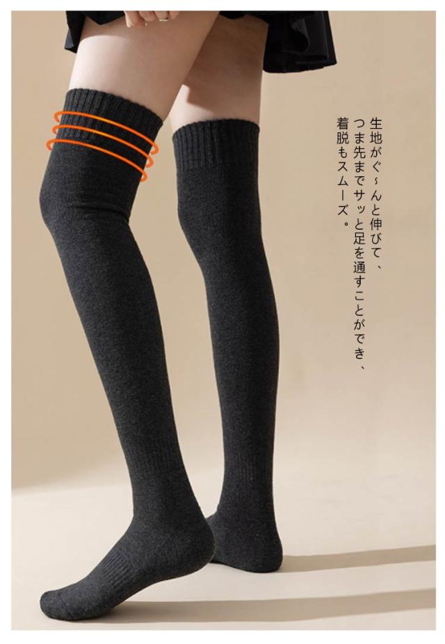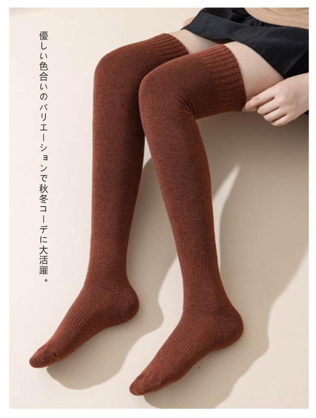 オーバーニーソックス 2足セット ニーハイソックス 送料無料 平編み 中学生 ハイソックス 靴下 無地 ロングソックス 厚地 ルームソックス 暖かい 送料無料 大人 保温 レディース 冷え対策 秋冬 膝上 あったか