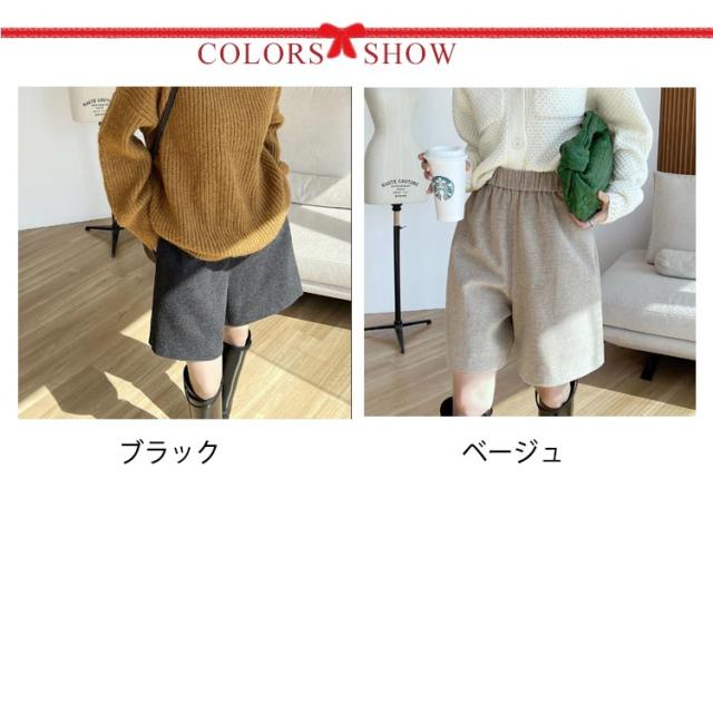 レディース ショートパンツ ウールタッチ ウエストゴム 半ズボン ハイウエスト 短パン 美脚 Aライン ハーフパンツ ワイドパンツ 短パン 膝丈 ボトムス 5分丈 おしゃれ 可愛い 秋冬 トレンド 流行 秋新作 ゆったり