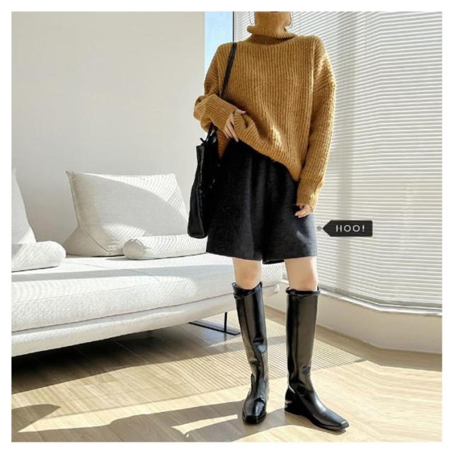 | 大人な印象のトレンドスタイルにウールタッチハーフパンツ。 ウエストゴムで、フィットしながらも窮屈さを感じないストレスフリーな穿き心地 程良くハリ感があり、立体的で上品なシルエットを叶えます。 絶妙な膝上丈に設定することで、足がすっきり見えるのもひそかなポイント。 トップスはインでもアウトでも合わせやすく、トレンドのロングブーツとのコーディネートも決まる一着です。 | |