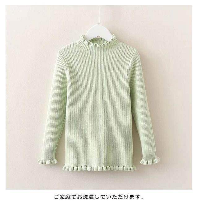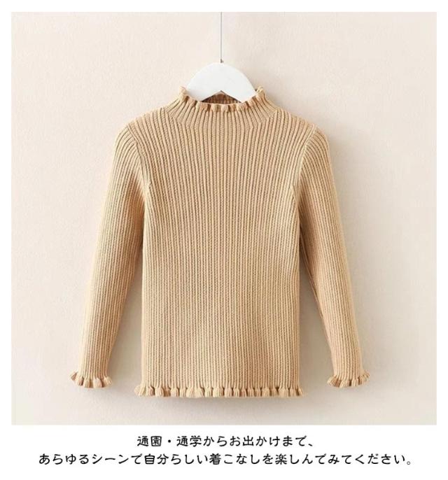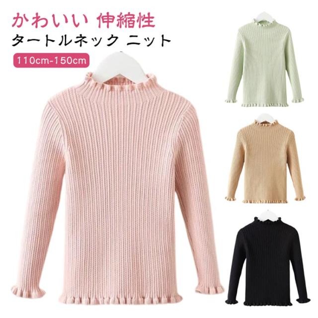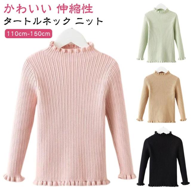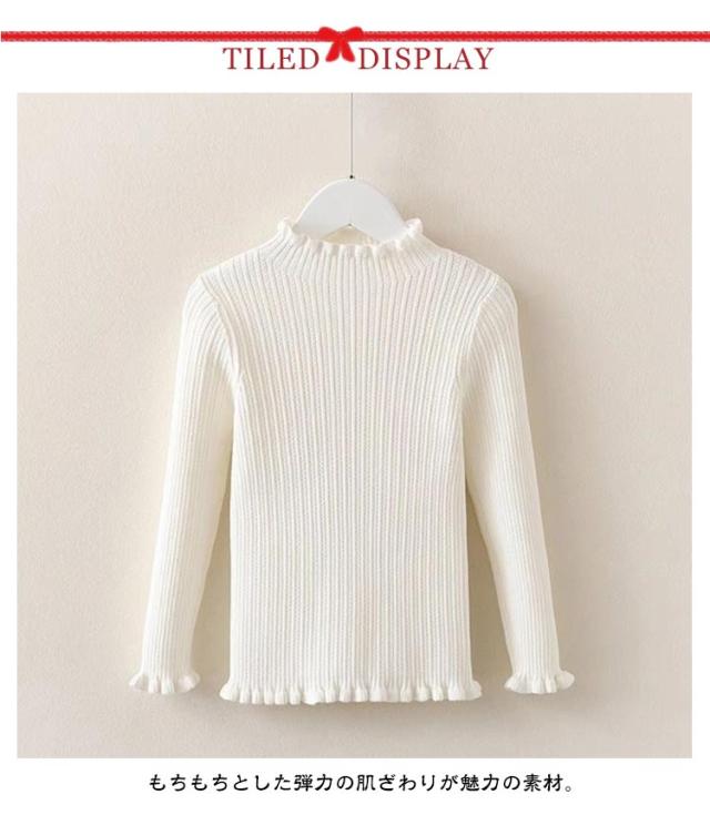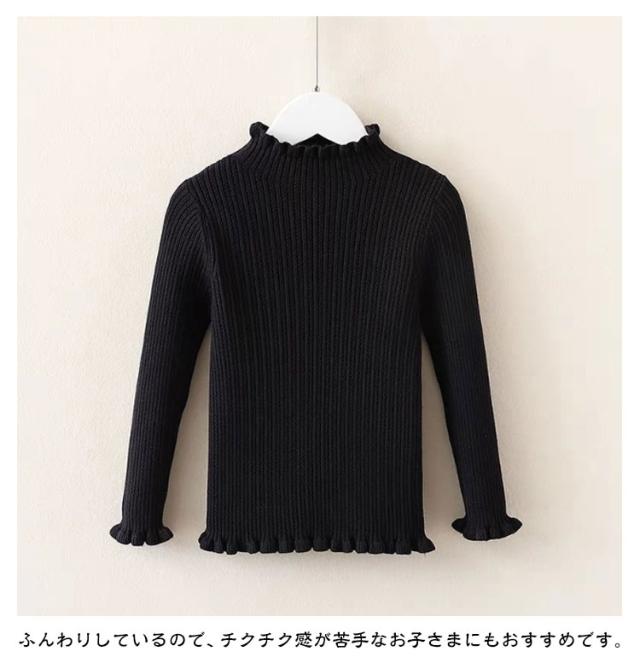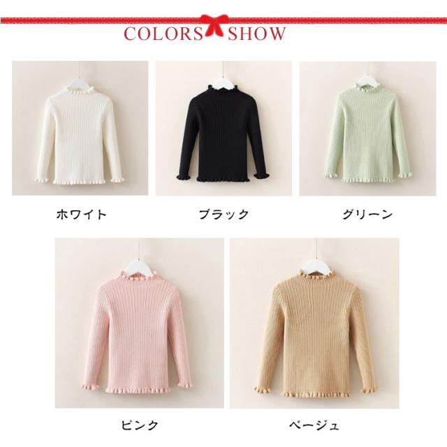 ジュニア ニット 子供服 インナー ベビー 女の子 おしゃれ 女の子 キッズ キッズ ニット ハイネック フリル 秋冬 タートルニット リブ タートルネック カジュアル バイカラー 春秋 セーター リブニット フリル 白 黒 無地 90 100 110 120 130 140