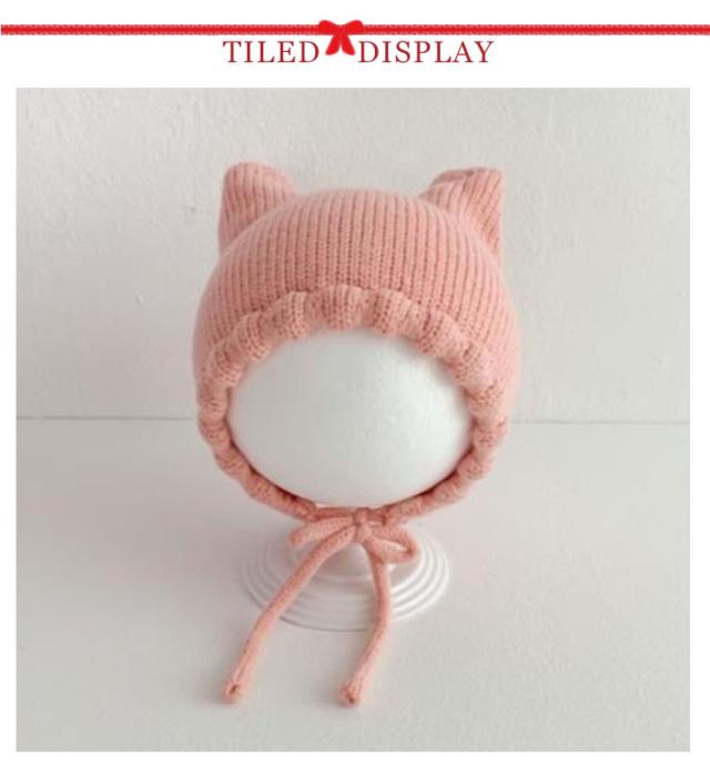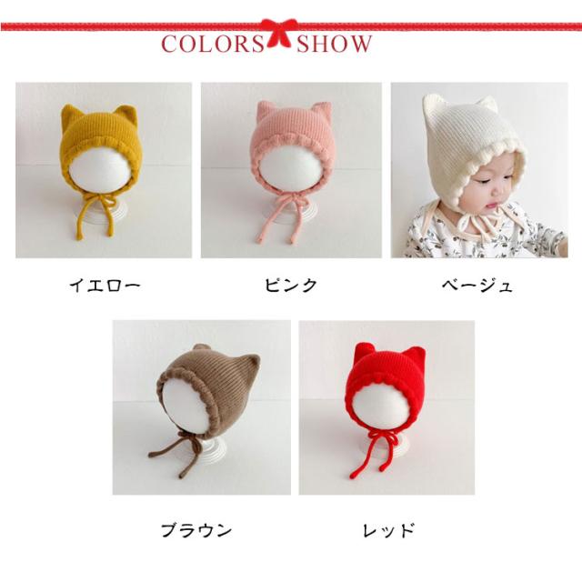 女の子 耳付き ベビー ねこ 男の子 可愛い 秋冬 ねこ耳 秋 冬 新生児 ニット帽 赤ちゃん 猫耳付き 帽子 ベビー帽子 スキー ニット帽 寒さ対策 猫 紐付き 子ども こども 月齢 フォト 男女兼用 幼児 キッズ帽子