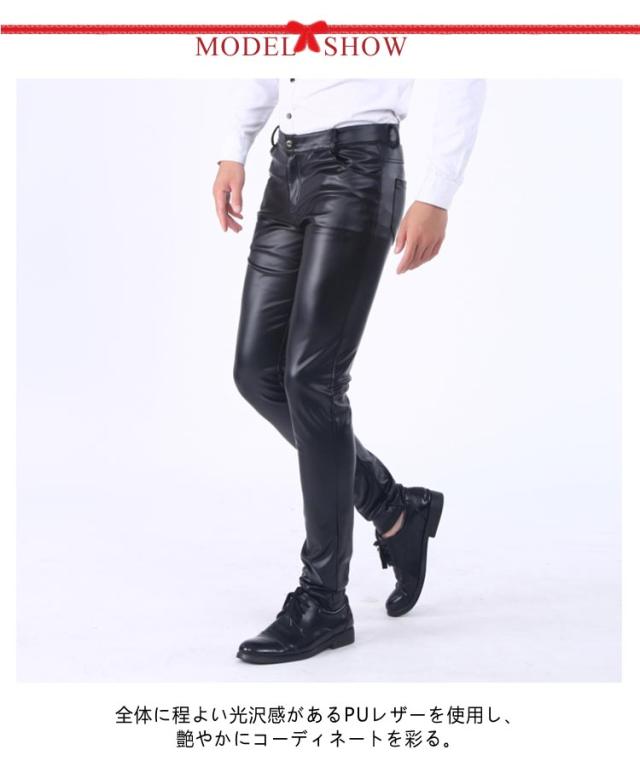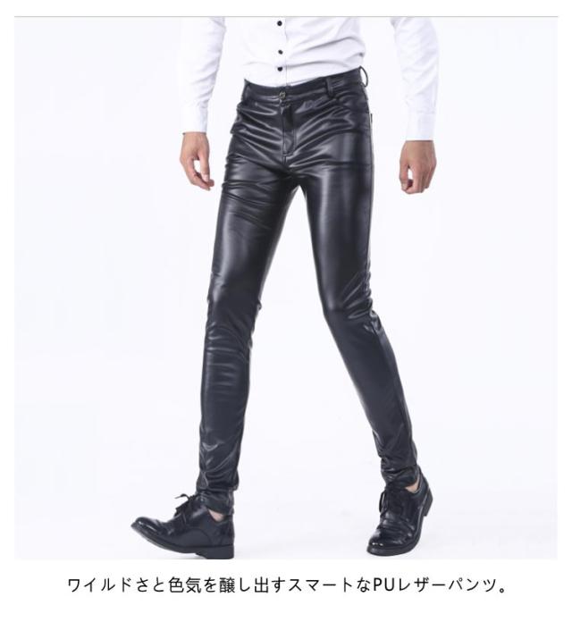 レザーパンツ レザーパンツ 合皮 ライダー レザパン バイカーパンツ メンズパンツ 革パン 夏 メンズ フェイクレザー シューカット ボトムス PUレザー ロック スキニーパンツ 春 秋 冬 オールシーズン メンズファッション お兄系