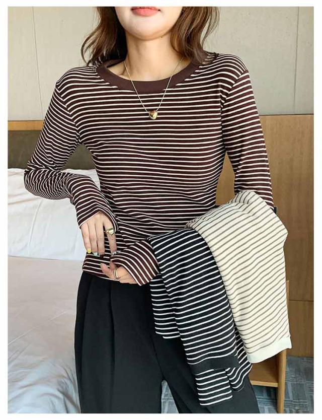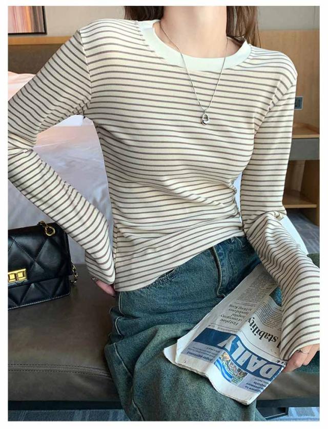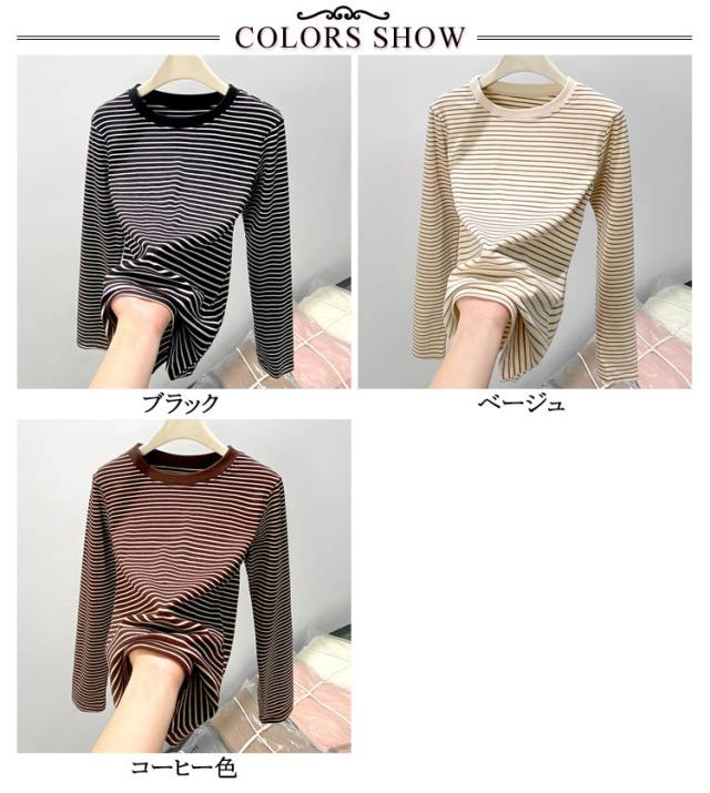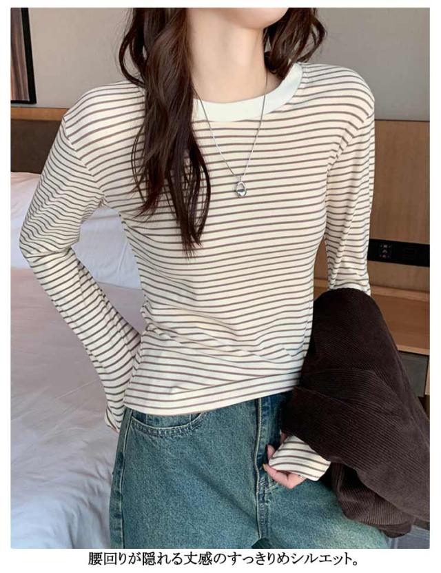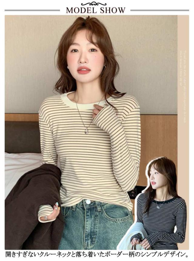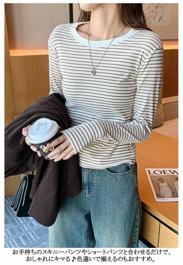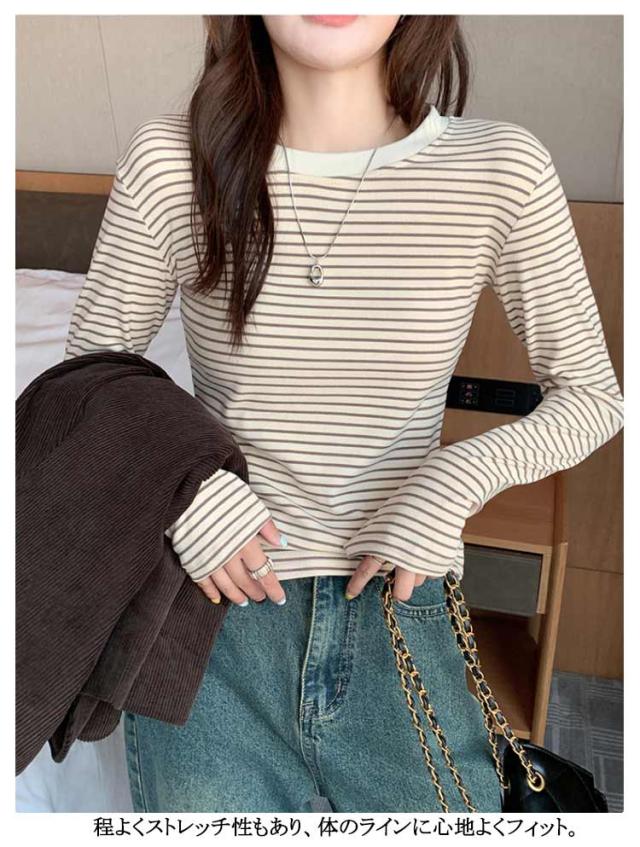 ボーダー 長袖tシャツ ブラいらず カットソー 送料無料 長袖 トップス ロンT ロングTシャツ インナー 柔らかい クルーネック カジュアル 薄手 着回し 通勤 通学