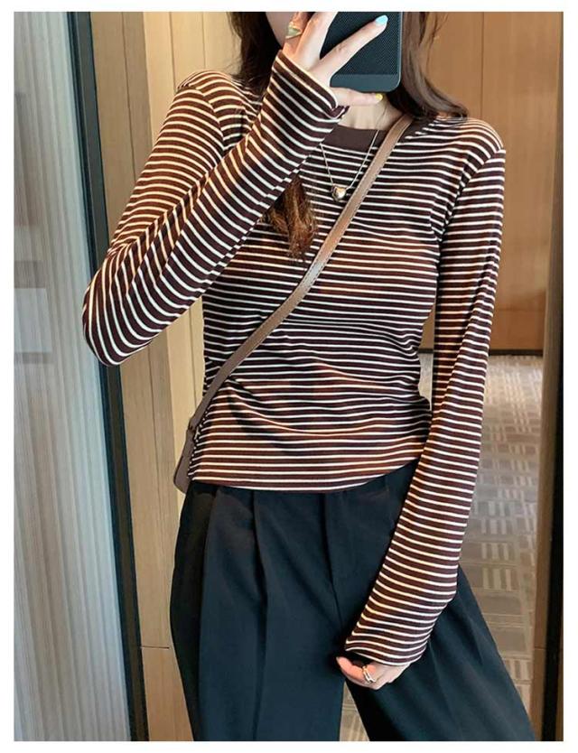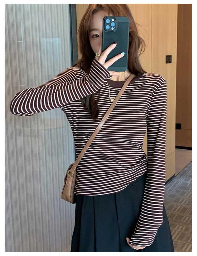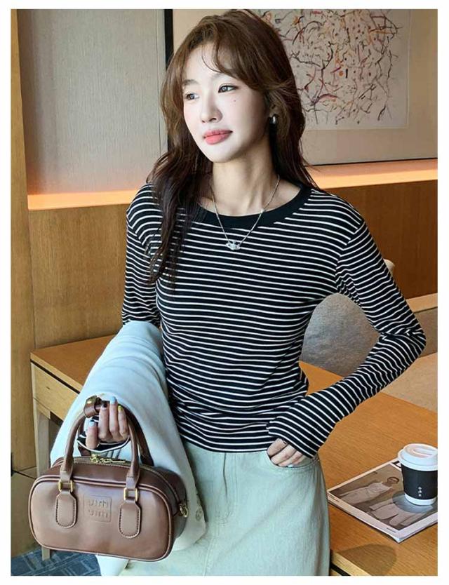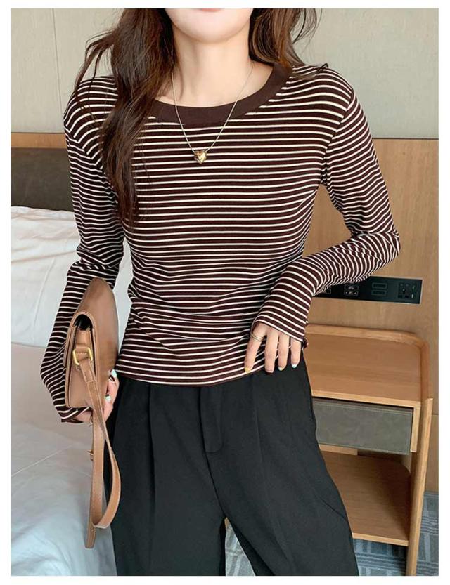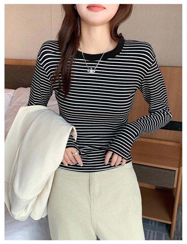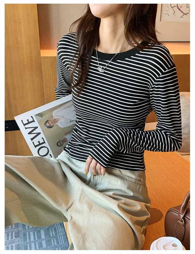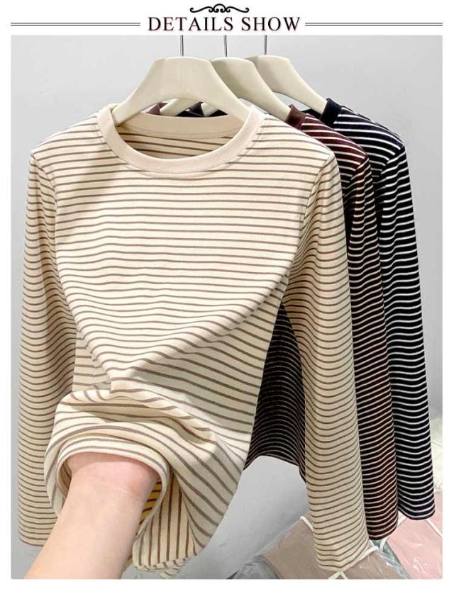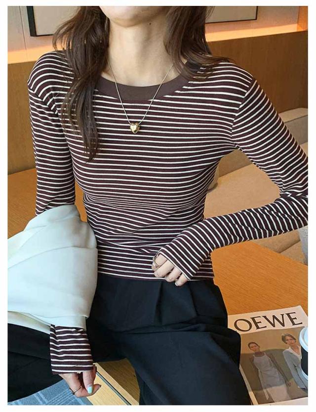 ボーダー 長袖tシャツ ブラいらず カットソー 送料無料 長袖 トップス ロンT ロングTシャツ インナー 柔らかい クルーネック カジュアル 薄手 着回し 通勤 通学