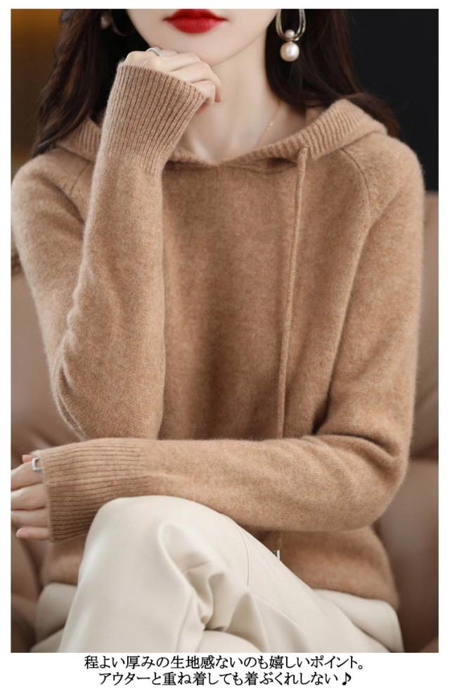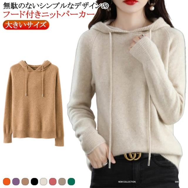 大人 ニットパーカー プルオーバー ニット レディース フード付き 春 ニットセーター長袖 パーカー 冬 秋 送料無料 ニットトップス ゆったり 大きいサイズ シンプル カジュアル 無地 通勤 送料無料 オフィス