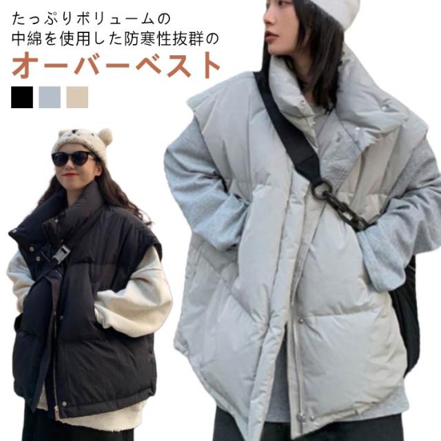 ダウン風ベスト ベスト ライトアウター レディース ノースリーブ ハイネック ジャケットベスト 中綿ベスト オーバーサイズ 中綿ベスト スタンドカラー ふかふか 防寒 暖かい ユニセックス