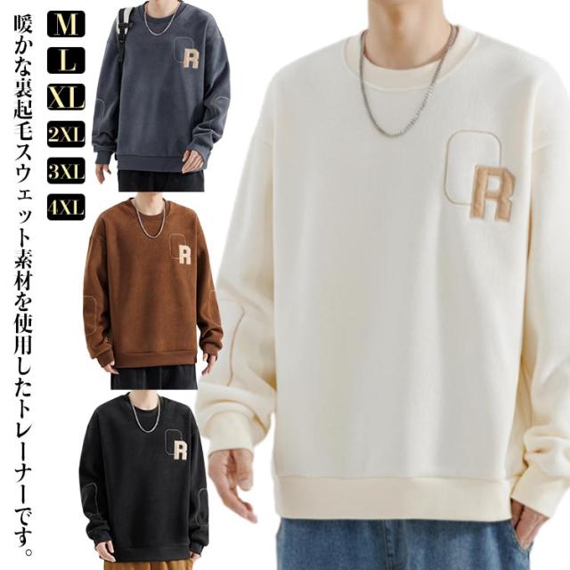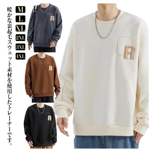 無地 スウェット トレーナー 起毛 プルオーバー 無地 防寒 フリース 暖かい 長袖トレーナー ビッグトレーナー 厚手 パッチワーク 長袖 シンプル メンズ 毛玉になりにくい 大きめ 冬 冬物 スウェット 冬服 スエット 暖かい M L XL 2XL 3XL