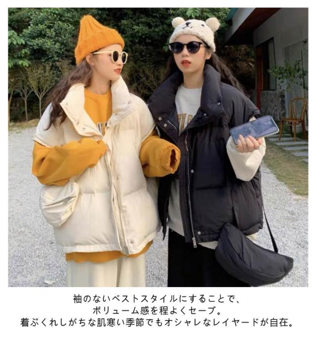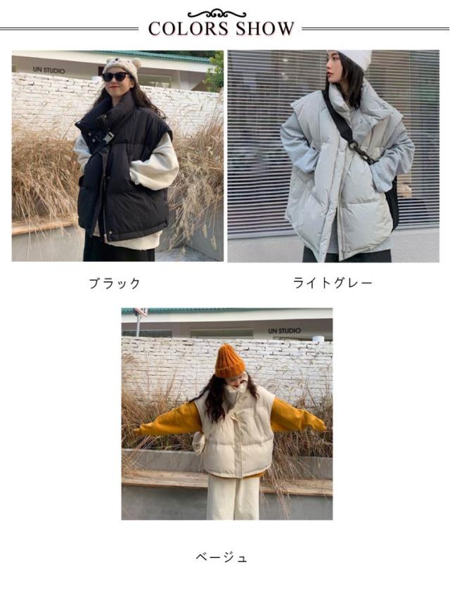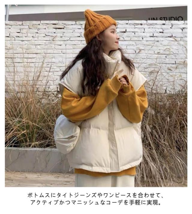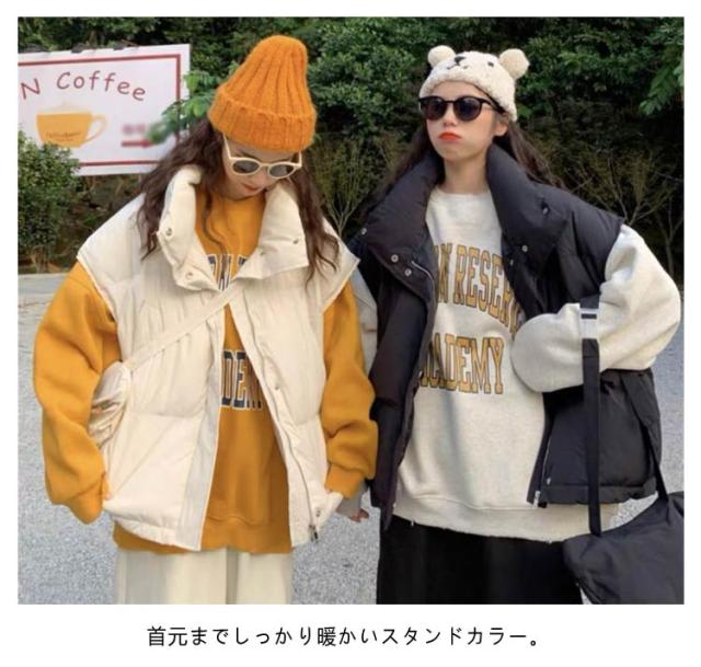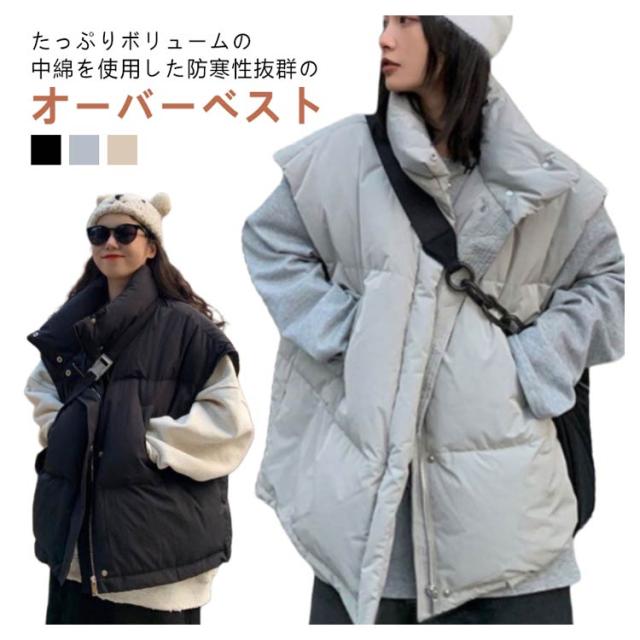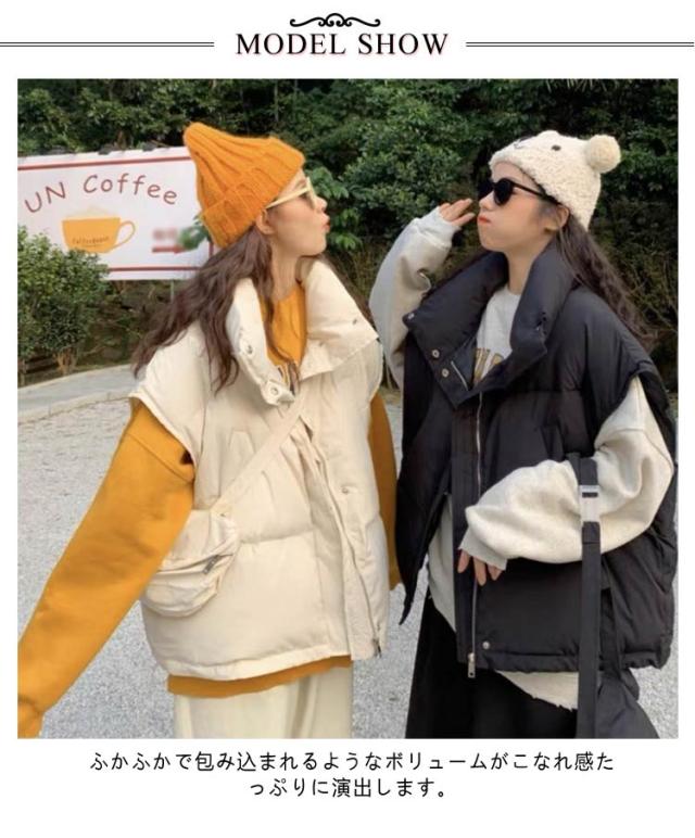 中綿ベスト レディース ハイネック ベスト ノースリーブ ダウン風ベスト 前開き オーバーサイズ ジャケットベスト 中綿ベスト スタンドカラー ふかふか 防寒 暖かい ユニセックス