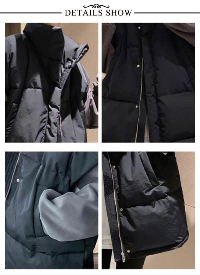 | 抜群の暖かさとふんわり軽くソフトな着心地が特徴のダウン風中綿ベスト。 軽量で包み込まれるような着用感がおしゃれと“暖かさ”をどちらも叶えるポイント。 ゆるっとラフに着用できるオーバーサイズ。 程よい襟立ちで首周りをガードしつつ嬉しい小顔効果も◎ ゆったりめなサイズ感なので厚手のインナーの上に着ていただいてもダウン特有の着ぶくれ感がないのが嬉しい。 大きめのフロントポケットは手を入れるのも小物収納にも便利、軽くて暖かな着心地、長時間着ても肩凝らずにらくちん! シンプルなデザインでコーディネートしやすく、スカートにもパンツにも、ワンピースの上から羽織ってもおしゃれ。 | |