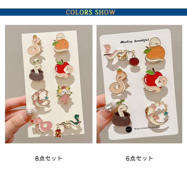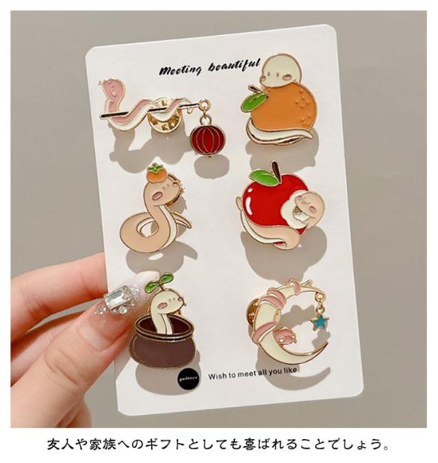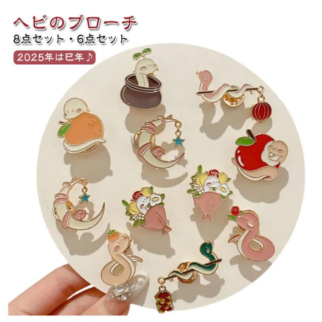 | 【ヘビのブローチ】 【8点セット・6点セット】 2025年は巳年♪さまざまなデザインのピンバッジ おしゃれでかわいらしいデザインが魅力です 巳年の象徴であるヘビをモチーフにしたこのブローチは、ファッションのアクセントとして 友人や家族へのギフトとしても喜ばれることでしょう。 | |