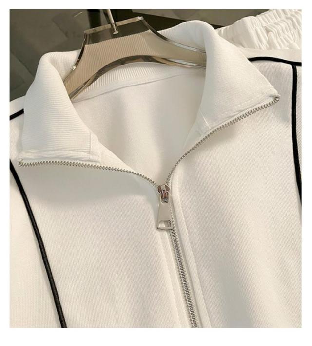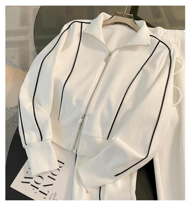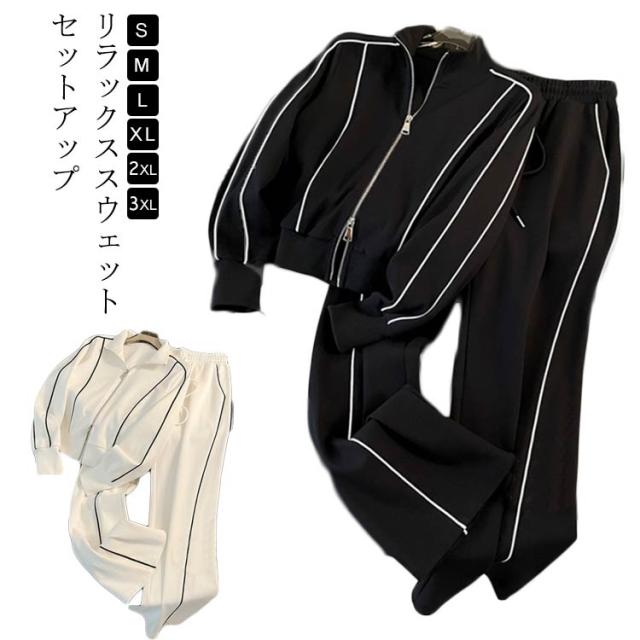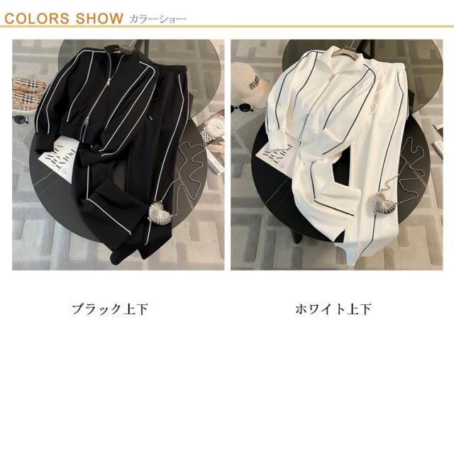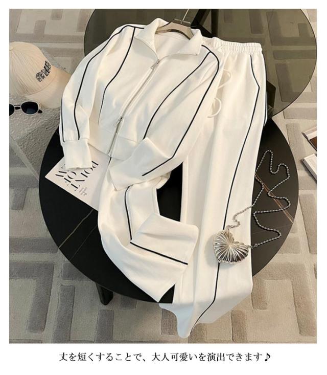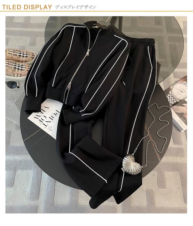 スタンドカラー スウェット 立ち襟 ロングパンツ スウェット ジップアップ ジャケット セットアップ レディース ダブルファスナー ショート丈 スポーティー カジュアル おしゃれ きれいめ シンプル 春