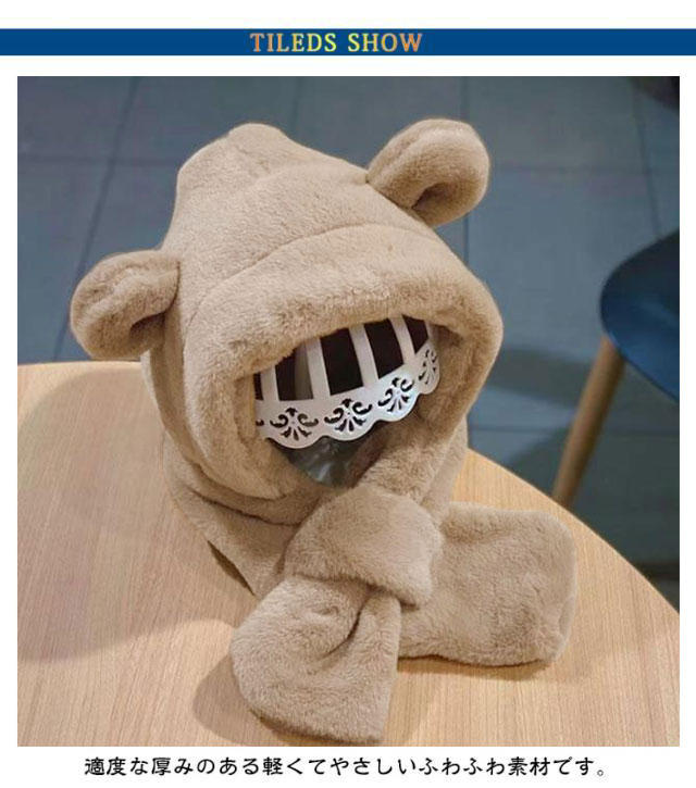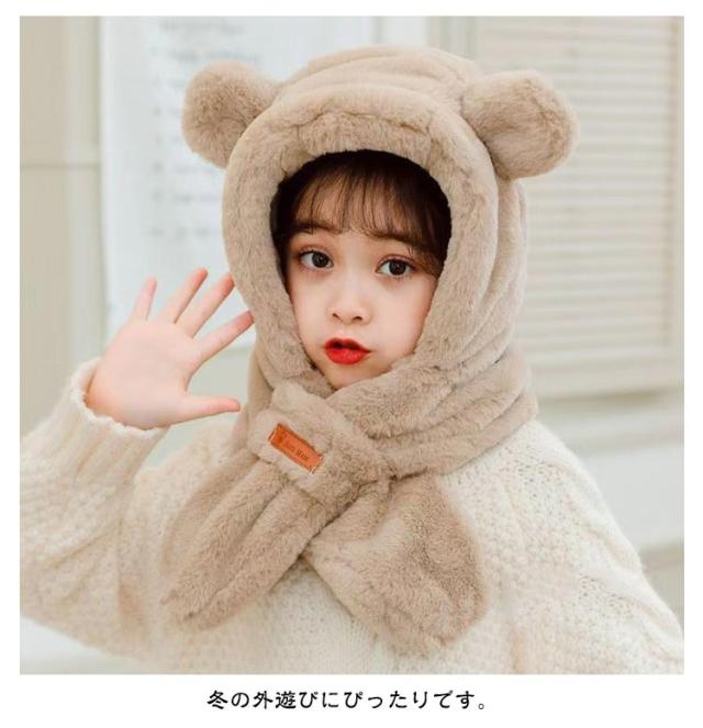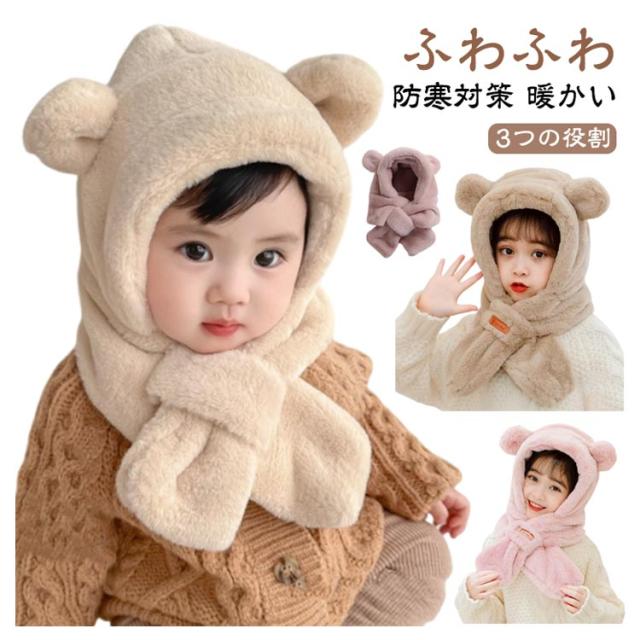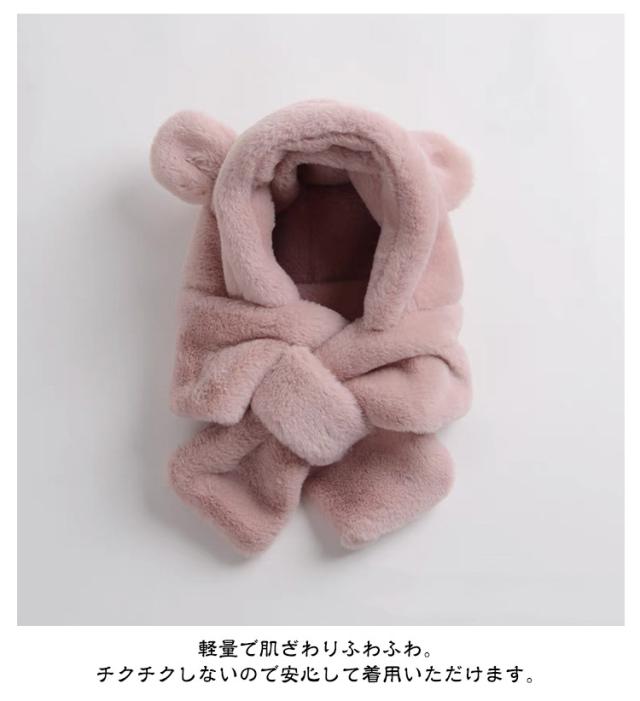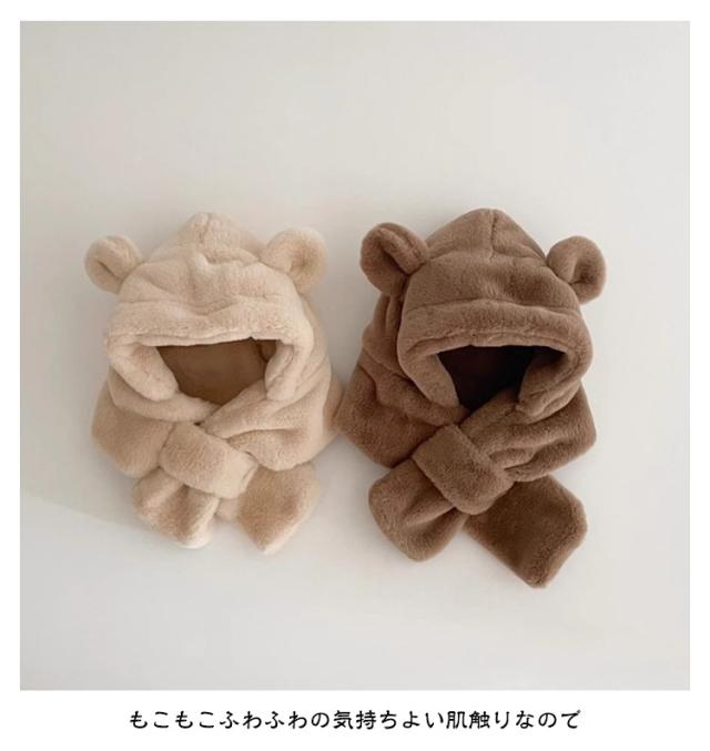 イヤーマフ マフラー 防寒 ベビー 冬 帽子 フード付き くまさん 耳付き フードウォーマー 女の子 男の子 一体型マフラー クマ くま耳 ふわふわ もこもこ 可愛い ティペット 暖かい 赤ちゃん ベビーマフラー