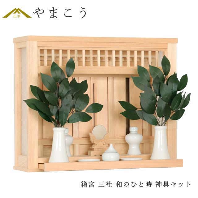 神棚 壁掛け 神棚セット 薄型 箱宮 三社 和のひと時 モダン神棚 神具セット コンパクト 三社宮 (代引き決済不可商品)