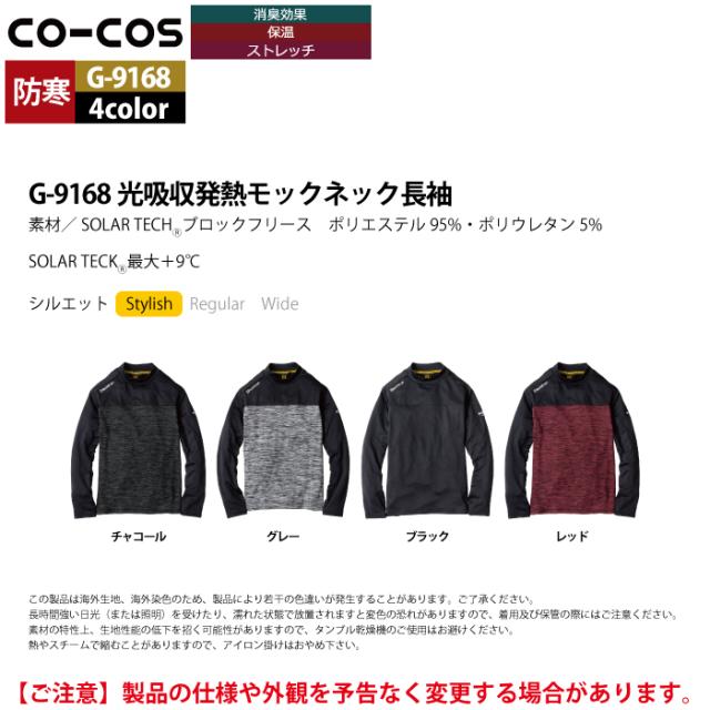 コーコス 作業服 秋冬用 G-9168 光吸収発熱モックネック長袖 S-XL