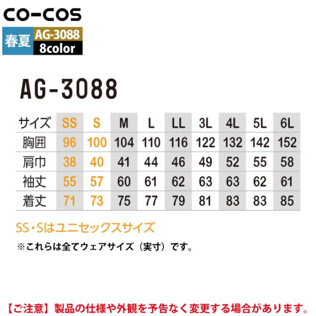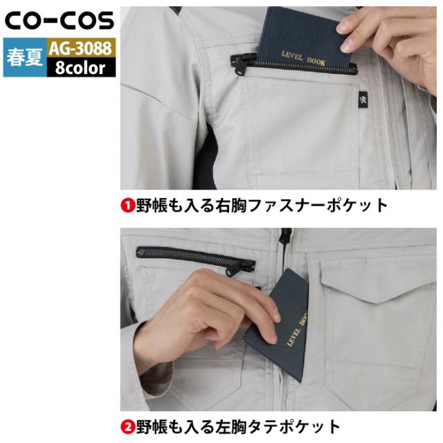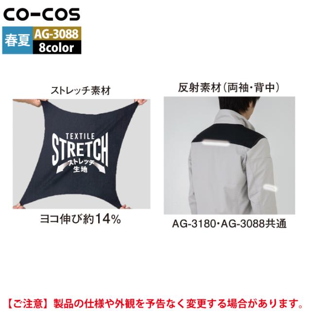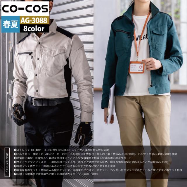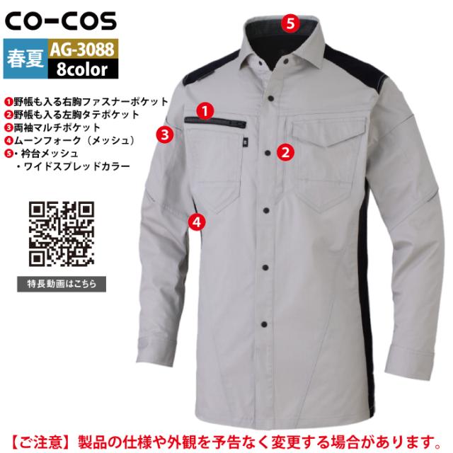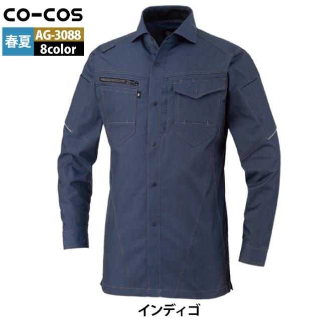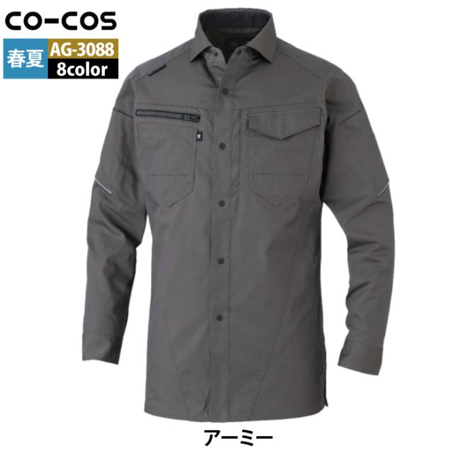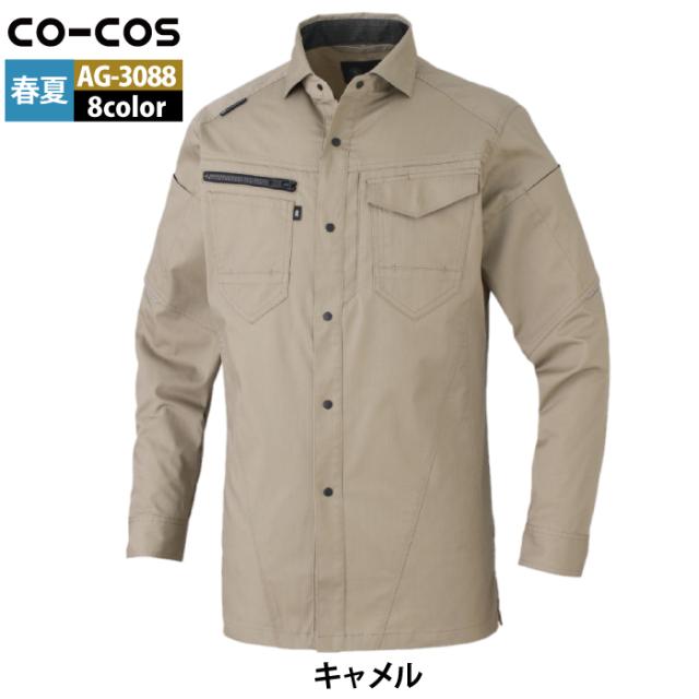 コーコス 作業服 オールシーズン AG-3088 ストレッチ長袖シャツ SS-LL
