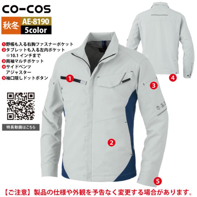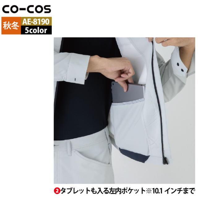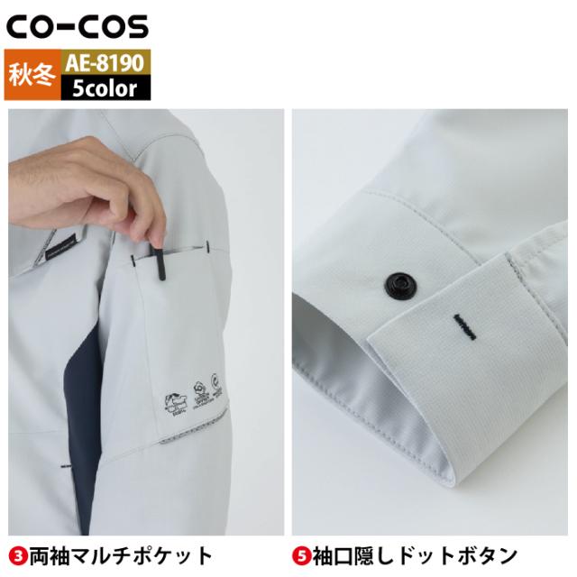 コーコス 作業服 秋冬用 AE-8190 エコ裏綿ストレッチブルゾン 4L-6L