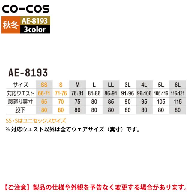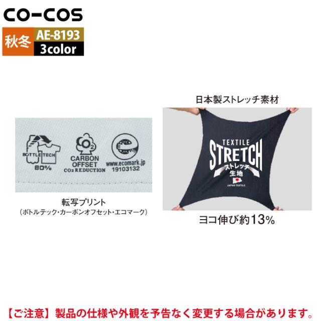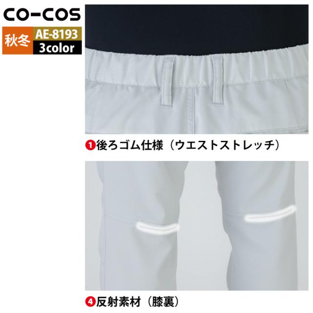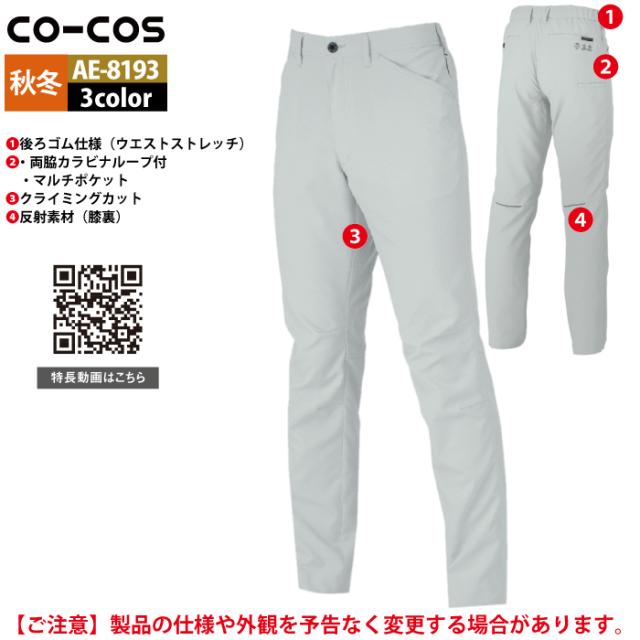 コーコス 作業服 秋冬用 AE-8193 エコ裏綿ストレッチスラックス SS-LL