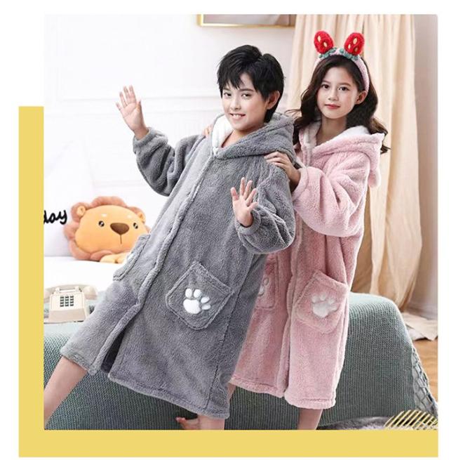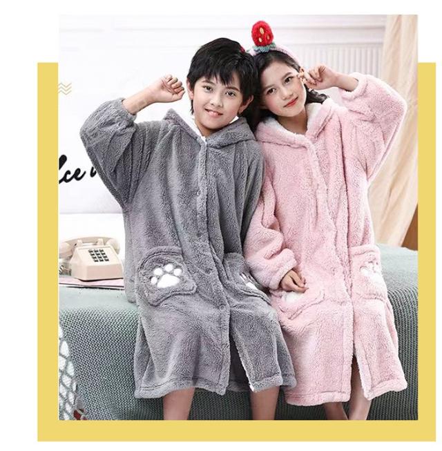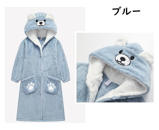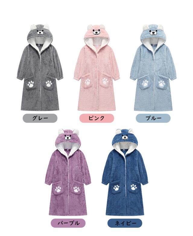 ルームウェア バスローブ キッズ パジャマ ガウン 寝巻き 着る毛布 部屋着 冬 男の子 女の子 子供パジャマ ロング ガウン ナイトウェア 前開き 長袖 もこもこ あったか ふわふわ コーラルフリース かわいい