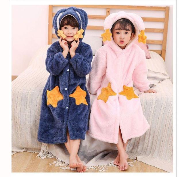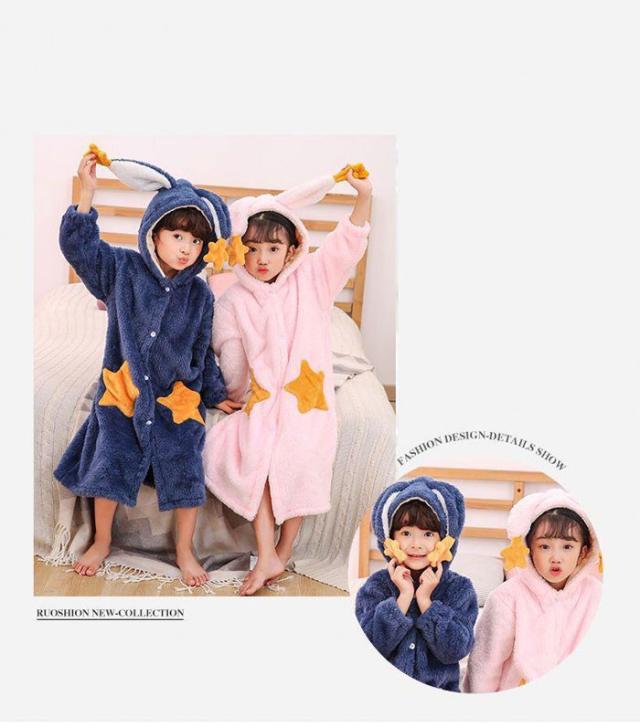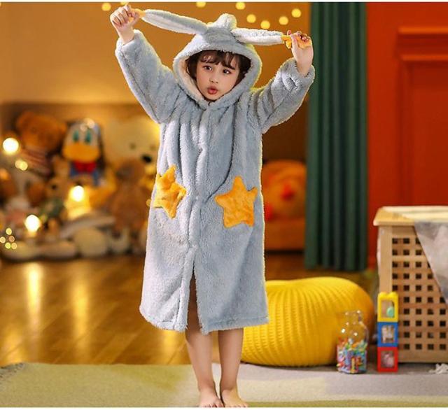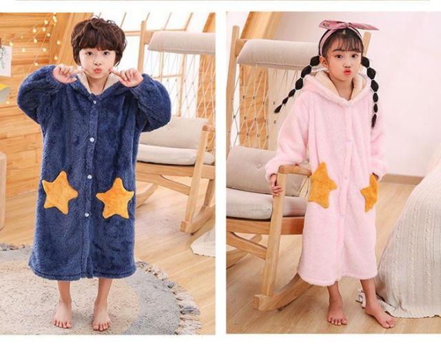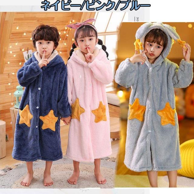 ルームウェア バスローブ キッズ パジャマ ガウン 寝巻き 着る毛布 部屋着 冬 子供 ロング ナイトウェア 前開き 長袖 コーラルフリース 厚手 保温 dh040x0x0h5