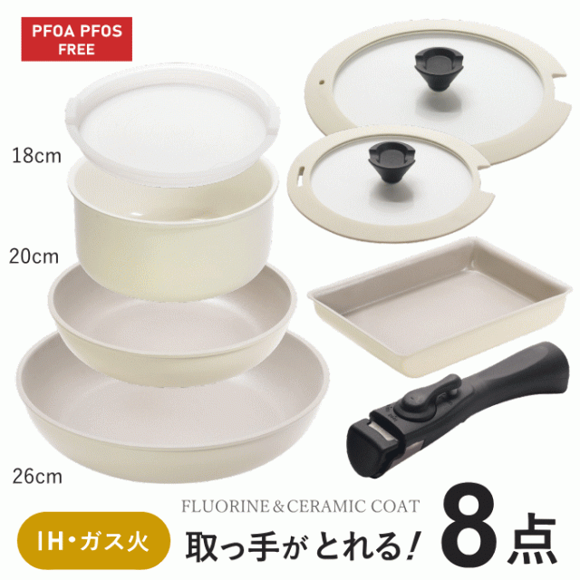 フライパン 鍋 セット 白 取っ手が取れる 蓋付き ih フライパンセット 20cm 26cm 深型 18cm ガス火 IH対応 軽量 軽い 福袋 玉子焼き 卵焼き器 卵焼き 一人暮らし 調理器具 セット 20センチ 26センチ 18センチ