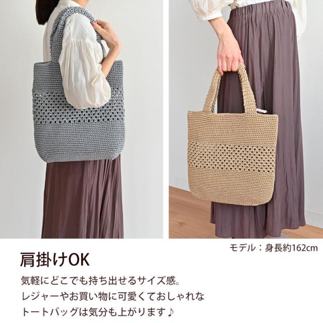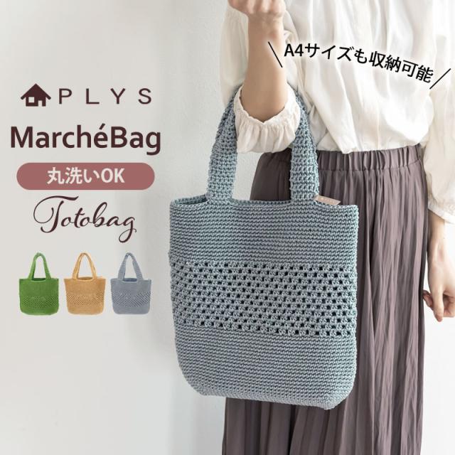 PLYS マルシェシリーズ トートバッグ レディース A4 バッグ かごバッグ カゴ かわいい おしゃれ 洗える 肩掛け ショルダー 夏 シンプル ナチュラル お買い物バッグ ショッピングバッグ 通勤 レジャー 涼し気 軽量 手編み 洗濯可能