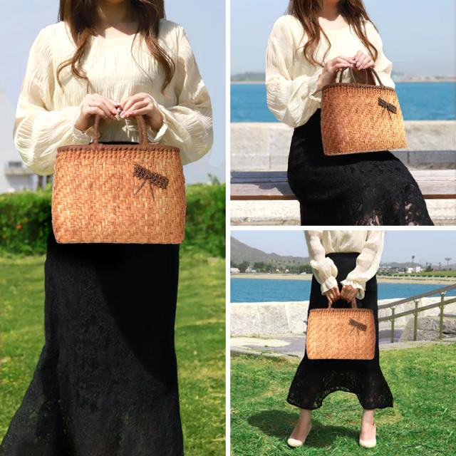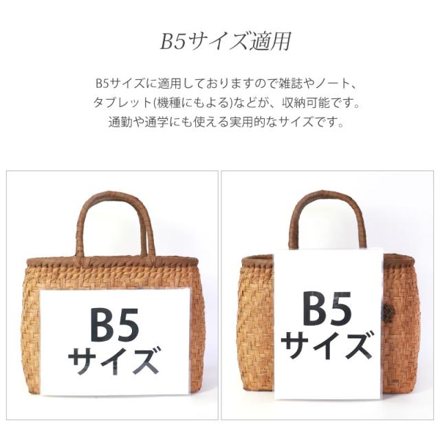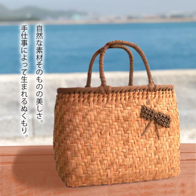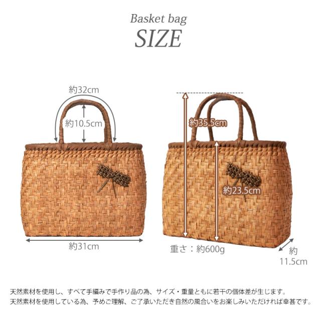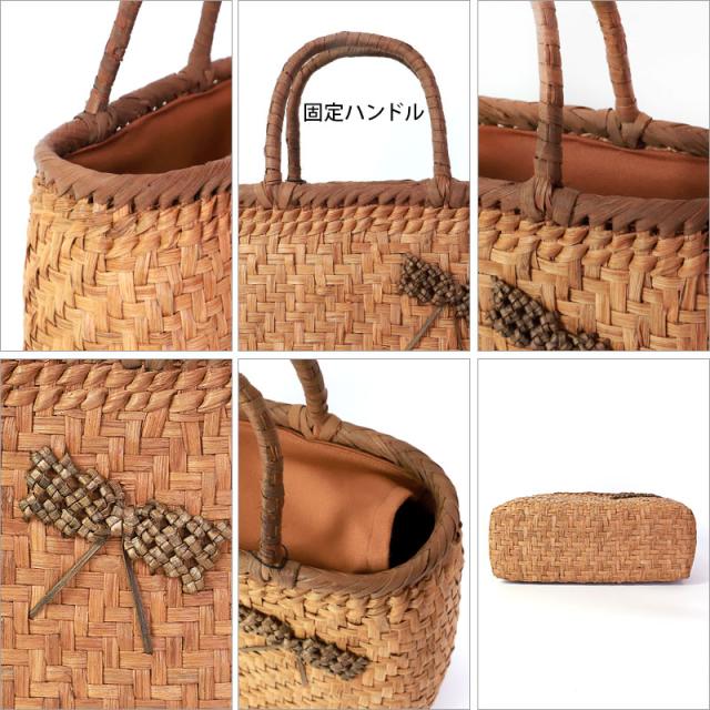 | 仕様 | 網代編み 固定ハンドル 柿渋染め内布(かぶせ付 内ポケット付き) 取り扱い説明書 保証書付き |