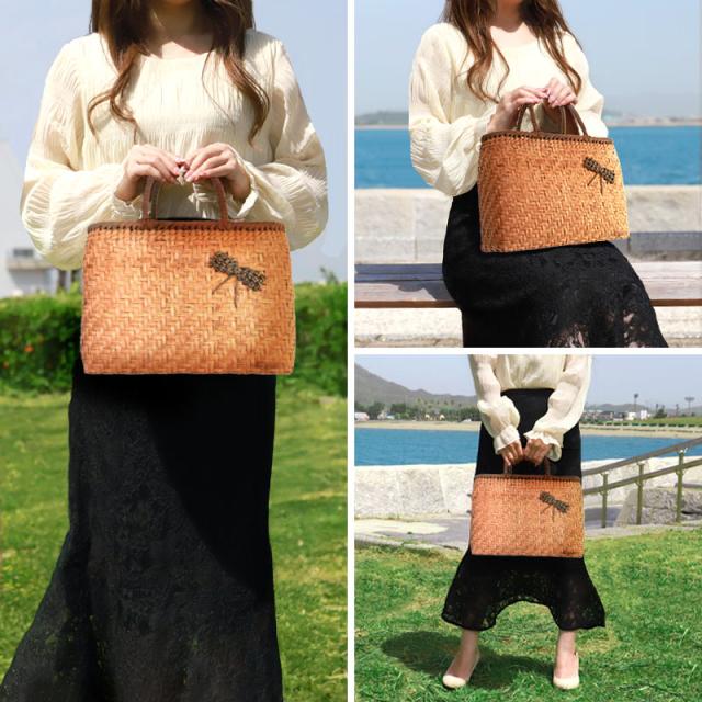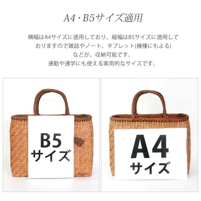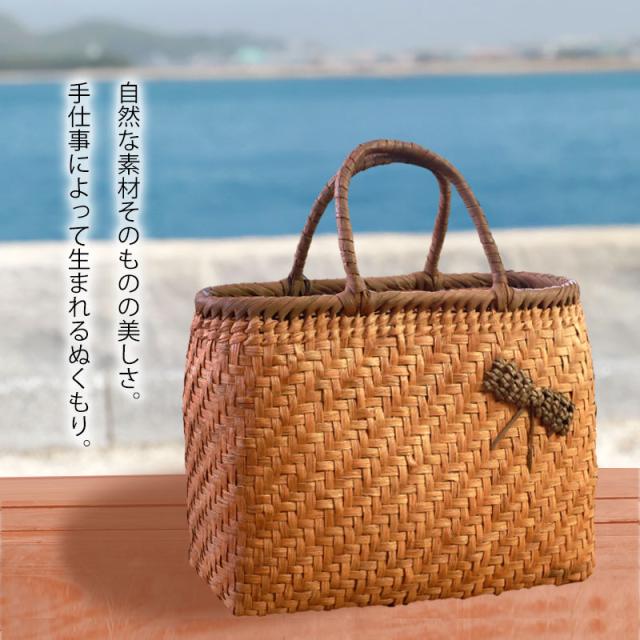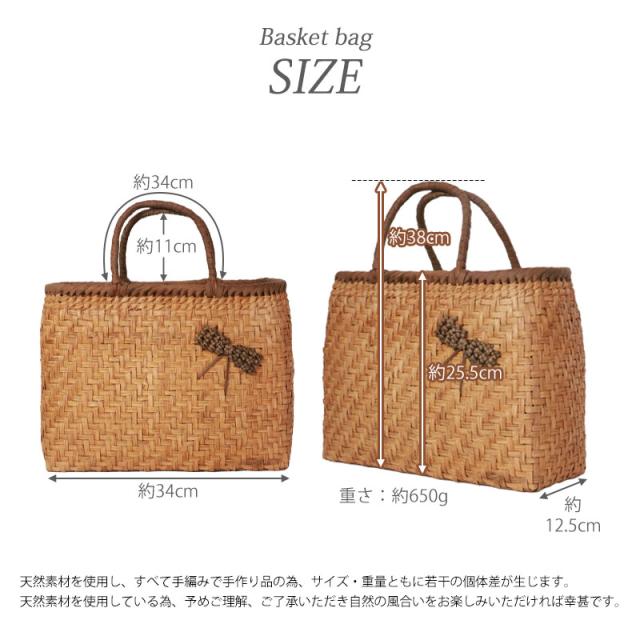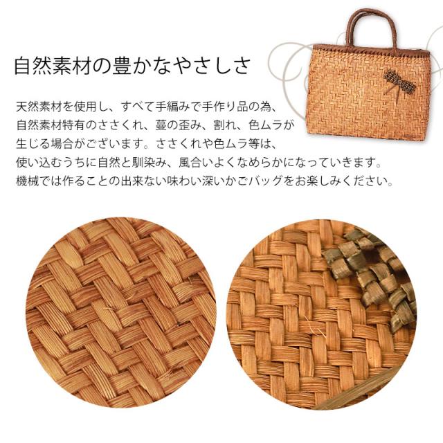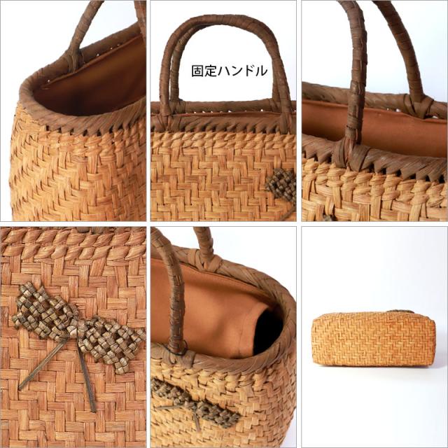 | 仕様 | 網代編み 固定ハンドル 柿渋染め内布(かぶせ付 内ポケット付き) 取り扱い説明書 保証書付き |
