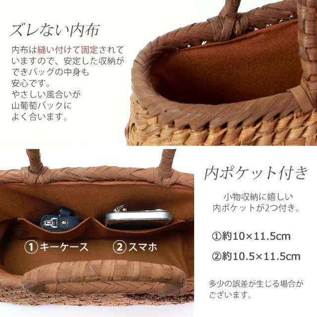 | 素材 | 鞄本体:天然山葡萄蔓 内布:綿100%(柿渋染め) |