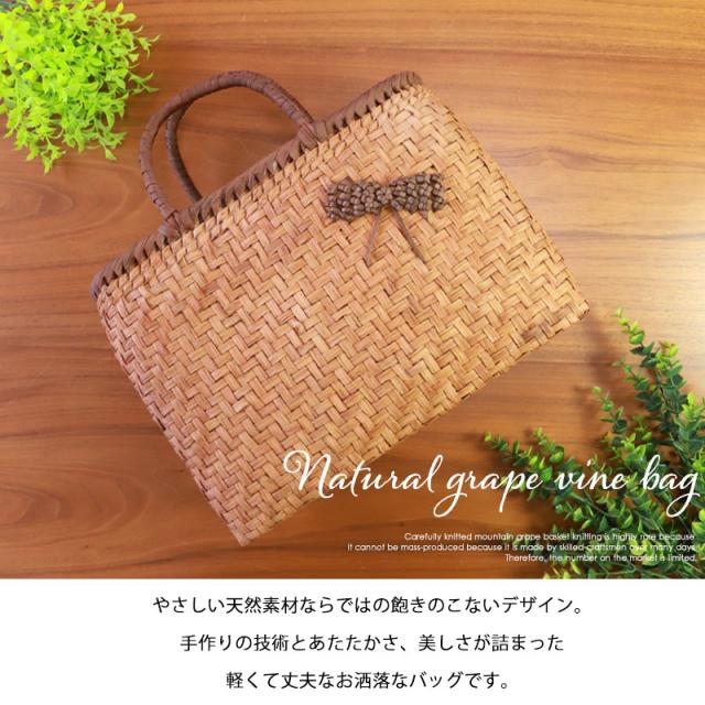 山葡萄 かごバッグ 1年保証付き 内布付き リボン 大 山ぶどう やまぶどう 蔓 天然素材 カゴバッグ 籠バッグ バスケット レディース 大人 おしゃれ 綺麗 網代編み 固定ハンドル 手提げ ハンドメイド 手作り 母の日 送料無料