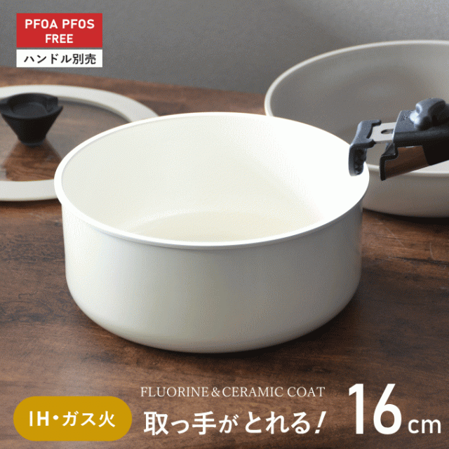 鍋 白 取っ手が取れる マルチポット 16cm ih 単品 セット でお得 深型 片手鍋 なべ ナベ ガス火 IH対応 軽量 軽い 福袋 保存容器 耐熱容器