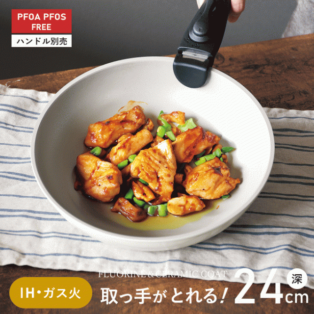 フライパン 深型 白 取っ手が取れる ih フライパン 単品 セット でお得 24cm ガス火 IH対応 軽量 軽い 福袋 24センチ ハンドル 取っ手の取れる 深い 中華鍋 炒め鍋 いため鍋