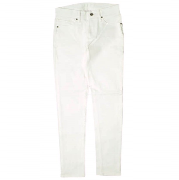 加工などが一切施されていないワンウォッシュ入りの5ポケットホワイトテーパードジーンズ。