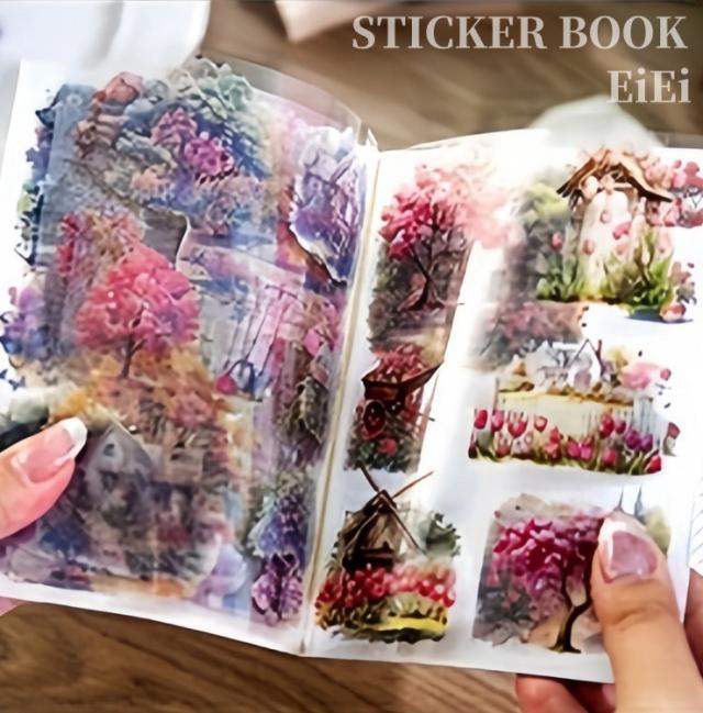 シールブック 型抜き 異素材 製本 女の子 人物 全身 シール コーヒー 珈琲 建物 建築 ガーデニング 薔薇 ローズ 藤ノ木 藤の花 樹 動物 植物 英語 レース 扉 大容量 大きめ マステシール PETシール ステッカーブック コラージュ素材 おしゃれ レトロ 日記 手帳 DIY
