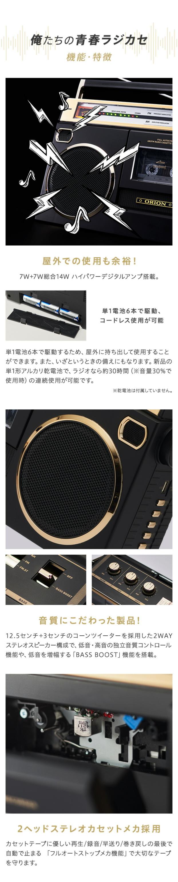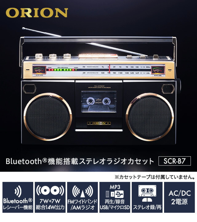 ORION Bluetooth搭載 ステレオラジカセ SCR-B7 カセットデッキ カセットテープ オーディオ プレーヤー MP3変換プレーヤー デジタル化 アンプ コンポ 昭和レトロ AM FM ワイドFM対応 USB MP3 再生 録音 マイク内蔵 乾電池 ブルートゥース オリオン ドウシシャ