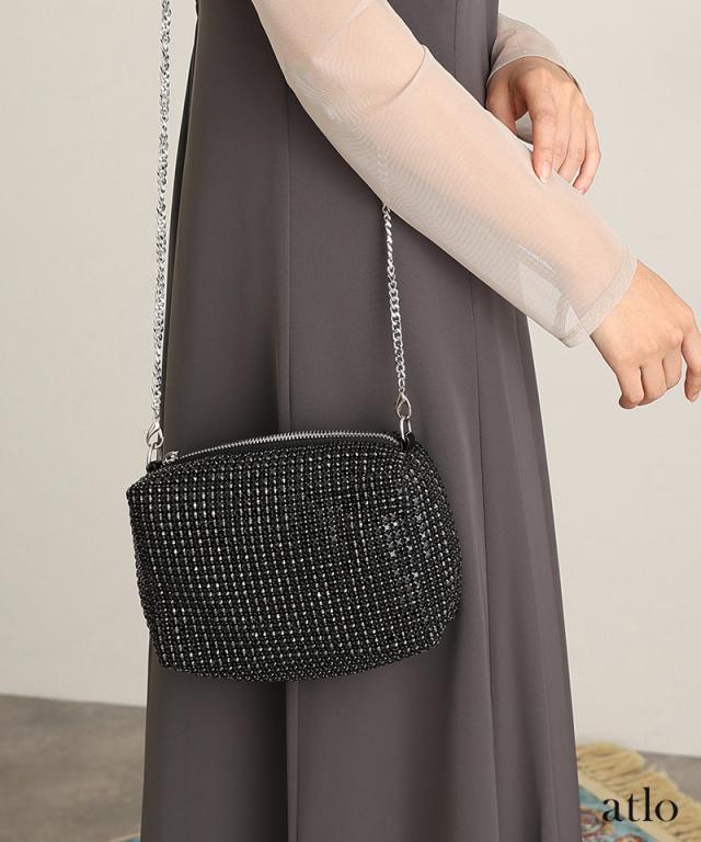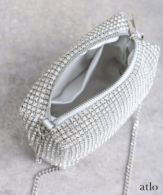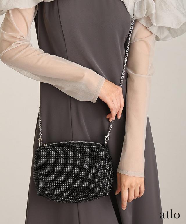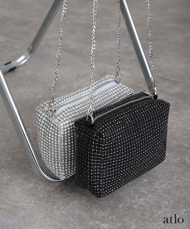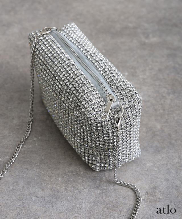 バッグ全体に施されたビジューが煌めくトレンドライクなバッグ。