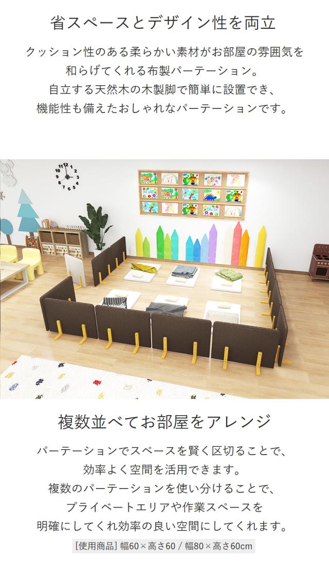 ローパーテーション パーテーション 間仕切り 目隠し 自立 パーティション ついたて ミニ 脚付き キッズ ガード 子供部屋 布製 1連 パネル 自立式 衝立 衝立て 仕切り 木製脚 床置き 什器 オフィス カフェ リビング 個室 日本製 北欧 モダン おしゃれ 幅80cm 高さ60cm Pin △
