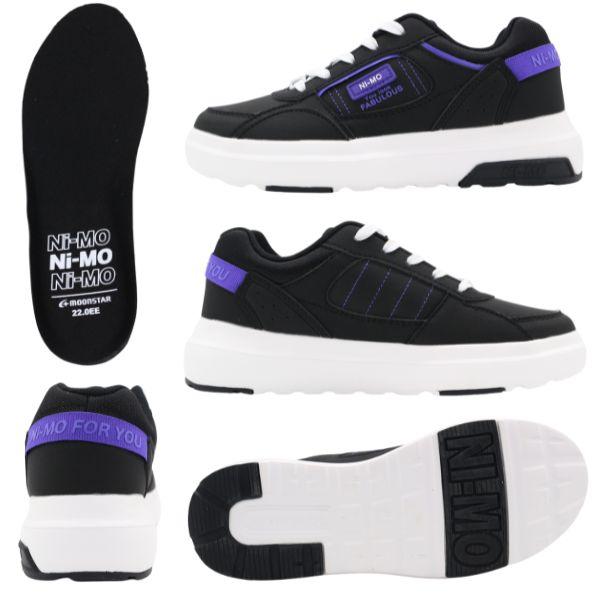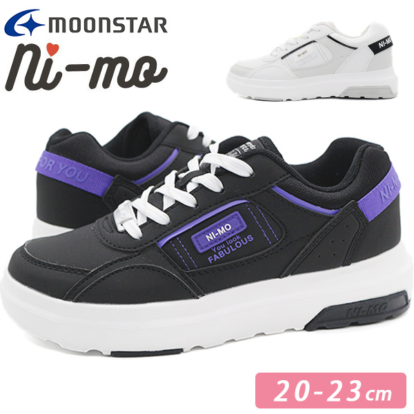 ムーンスター ニーモ スニーカー キッズ ジュニア 子供 靴 白 ホワイト 黒 ブラック 紫 パープル ノンマーキーングラバー 女の子 可愛い おしゃれ ガールズ スタイルアップ 脚長効果 ボリュームソール 厚底 コートスニーカー 抗菌 防臭 ムーンスター moonstar ni-mo NM J127