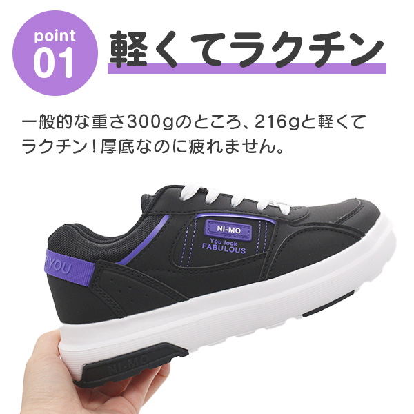 一般的な重さ300gのところ、216gと軽くてラクチン!厚底なのに疲れません。