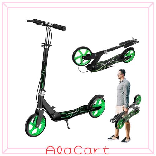 【1台あればみんなで遊べる】本体は軽量で頑丈なアルミボディを採用。デッキ面が滑り止め加工を施したことで、安心で快適な滑りをサポートします。身長の大きな方でも安定する大幅のデッキと、大人の手でも握りやすい長さとグリップ性が強いラバーグリップで乗り心地に特化した、移動に便利なキックボードです。