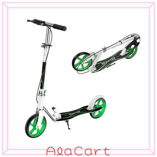 【1台あればみんなで遊べる】本体は軽量で頑丈なアルミボディを採用。デッキ面が滑り止め加工を施したことで、安心で快適な滑りをサポートします。身長の大きな方でも安定する大幅のデッキと、大人の手でも握りやすい長さとグリップ性が強いラバーグリップで乗り心地に特化した、移動に便利なキックボードです。
