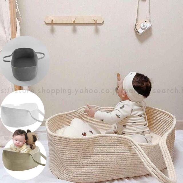 かご ベビー バスケット 赤ちゃんクーファン 2点セット ベビーポルカ ロープ編み 敷きマット付き クーハン ベビーキャリー かご ベビー バスケット 赤ちゃん