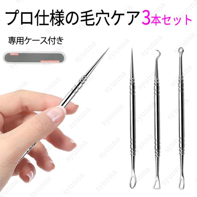 br194#ニキビ取り 日本国内当日発送 3本セット 角栓取り 毛穴ケア 黒ずみ フェイスケア スキンケア いちご鼻 抗菌 ステンレス 角栓除去 ニキビ針