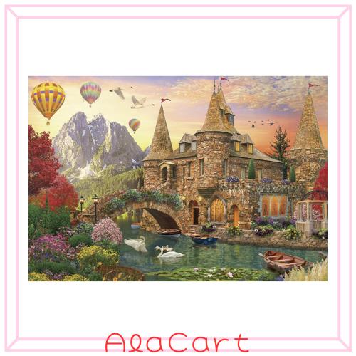 【幻のお城】花と湖に囲まれだ美しいお城を描かれだジグソーパズル。自由な白鳥達と一緒に美しいパズルを楽しむことができます。
